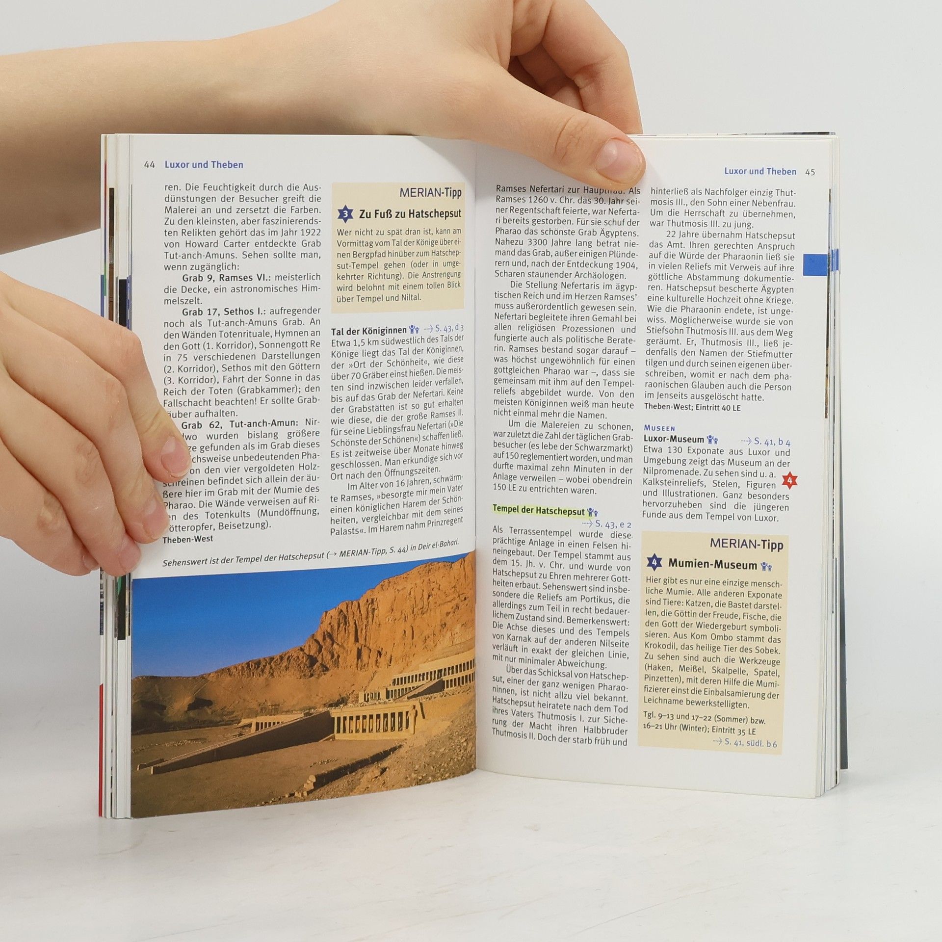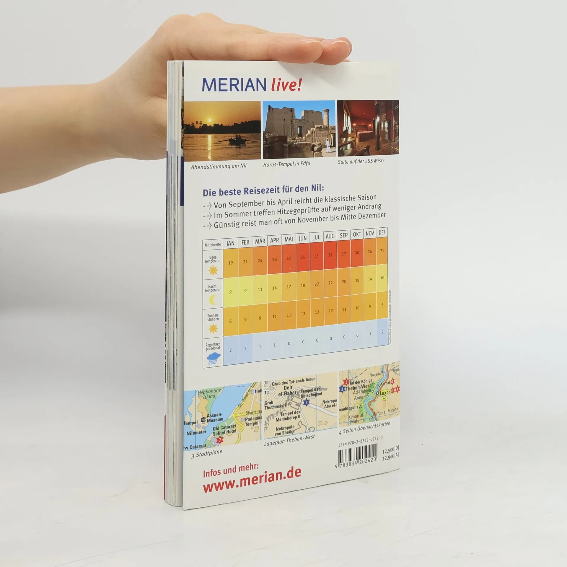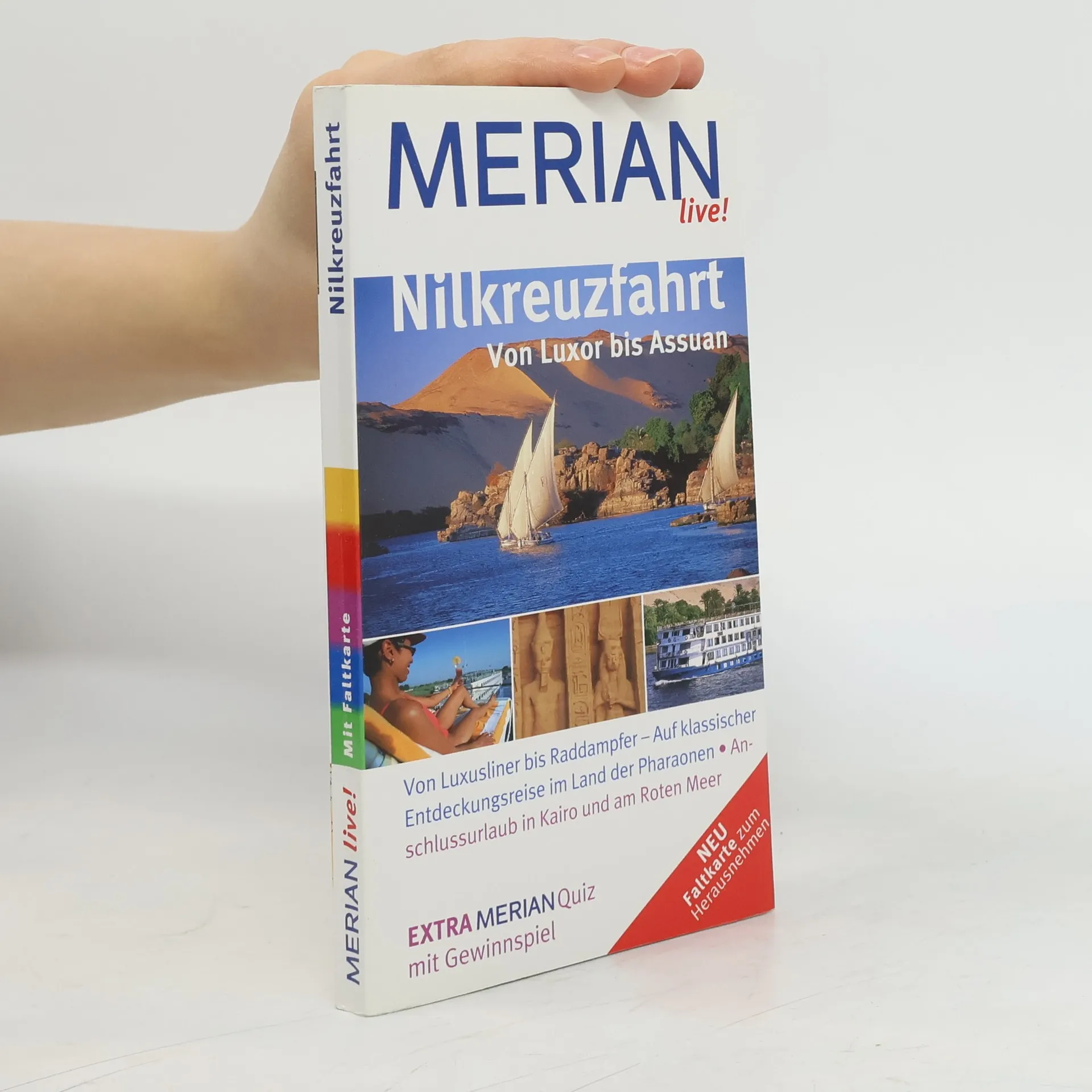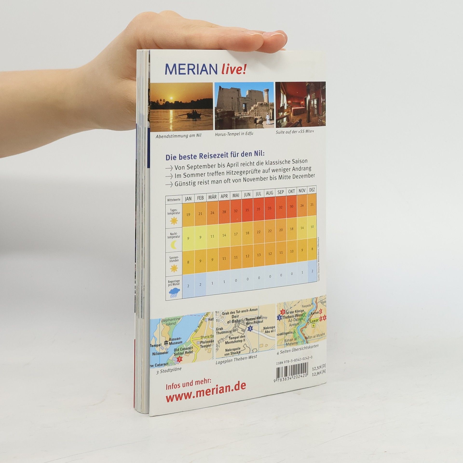Mehrfach ausgezeichnet als bester Kompakt-Reiseführer: 1. Platz ITB BuchAward! Jetzt neu mit herausnehmbarer Landkarte zusätzlich zum Kartenatlas. Extra: MERIAN-Quiz mit Gewinnspiel! +++ Eine Auswahl aus dem Inhalt - Die schönsten Orte und Regionen: Luxor und Theben: Götter und das Tal der Könige + Nördlich von Luxor: Dendera und Abydos + Von Luxor nilaufwärts: Esna, Edfu, Kom Ombo + Assuan + Südlich von Assuan: Philae und Kalabsha + Ausflug nach Abu Simbel: Ramses II. imposantestes Werk +++ Die 3 spannendsten Routen und Touren: Kairo und Giza + Hurghada: Badespaß an Traumstränden + Sharm el-Sheikh: Pilgerziel für Sonnenanbeter +++ Ca. 60 Farbfotos, herausnehmbarer Landkarte plus 4 Seiten Kartenatlas, 1 Übersichtskarte, 3 Stadtpläne, 1 Detailplan, Sprachführer und Essdolmetscher, MERIAN-TopTen und MERIAN-Tipps +++ MERIAN-Spezial-Themen: Nilreise nostalgisch + Von Amun bis Thot + Von Ziehbrunnen und Wasserbüffeln.