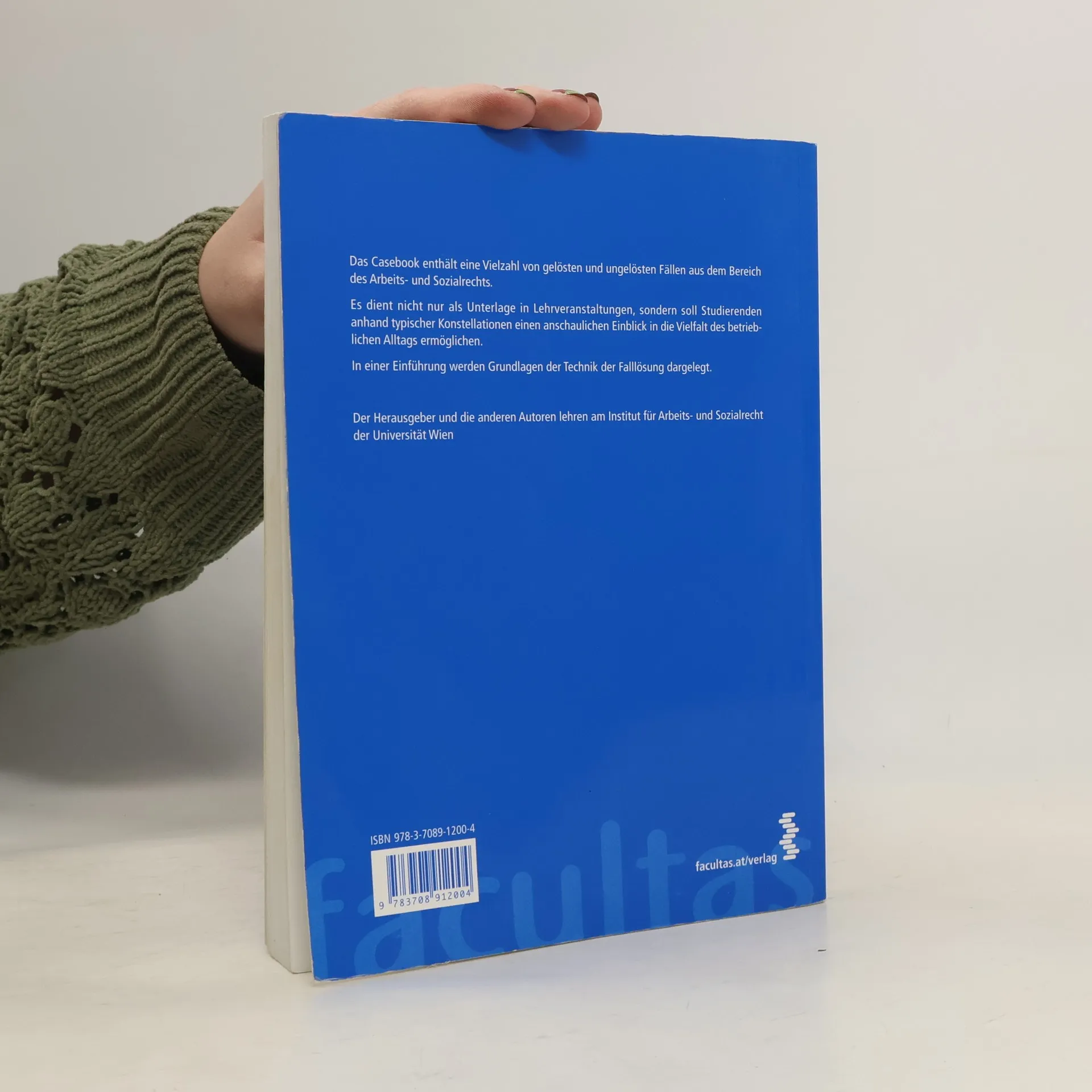 Das Casebook enthält eine Vielzahl von gelösten und ungelösten Fällen aus dem Bereich des Arbeits- und Sozialrechts. Es dient nicht nur als Unterlage in Lehrveranstaltungen, sondern soll Studierenden anhand typischer Konstellationen einen anschaulichen Einblick in die Vielfalt des betrieblichen Alltags ermöglichen. In einer Einführung werden Grundlagen der Technik der Falllösung dargelegt.