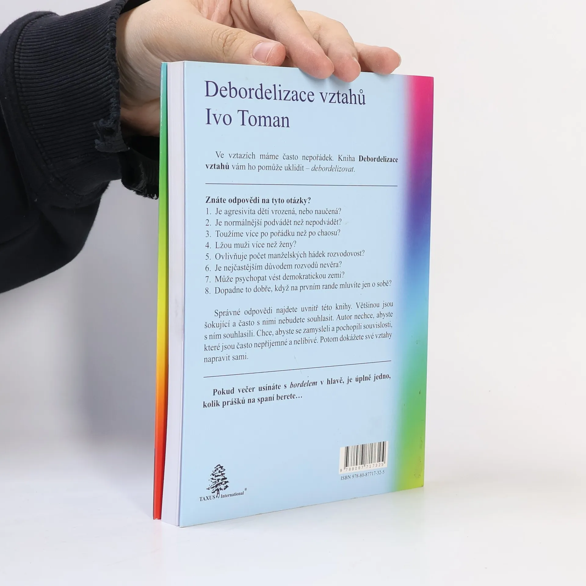 Ve vztazích často panuje chaos. Publikace vám pomůže tento nepořádek uklidit a debordelizovat. Znáte odpovědi na otázky jako: Je agresivita dětí vrozená nebo naučená? Je normálnější podvádět než být věrný? Toužíme více po pořádku než po chaosu? Lžou muži více než ženy? Ovlivňuje počet manželských hádek rozvodovost? Je nevěra nejčastějším důvodem rozvodů? Může psychopat vést demokratickou zemi? A co se stane, když na prvním rande mluvíte jen o sobě? Odpovědi na tyto otázky najdete uvnitř knihy, většinou šokující a často s nimi nebudete souhlasit. Autor nechce, abyste s ním souhlasili; chce, abyste se zamysleli nad nepříjemnými souvislostmi a opravili své vztahy. Pokud usínáte s chaosem v hlavě, nezáleží na tom, kolik prášků na spaní berete. Recenze doktora Radima Uzla naznačuje, že publikace je průvodcem v partnerských vztazích a radí, jak řešit krizové situace. Autor se s humorem dívá do ložnic a obývacích pokojů a zkoumá příčiny konfliktů. Jeho odborné znalosti jsou podloženy množstvím citací a pramenů. Kniha nabízí návod k utřídění postojů a dovedností, po jejím přečtení budete mít jasno a pořádek ve svých myšlenkách. Je to čtení, které by si měl přečíst snad každý!