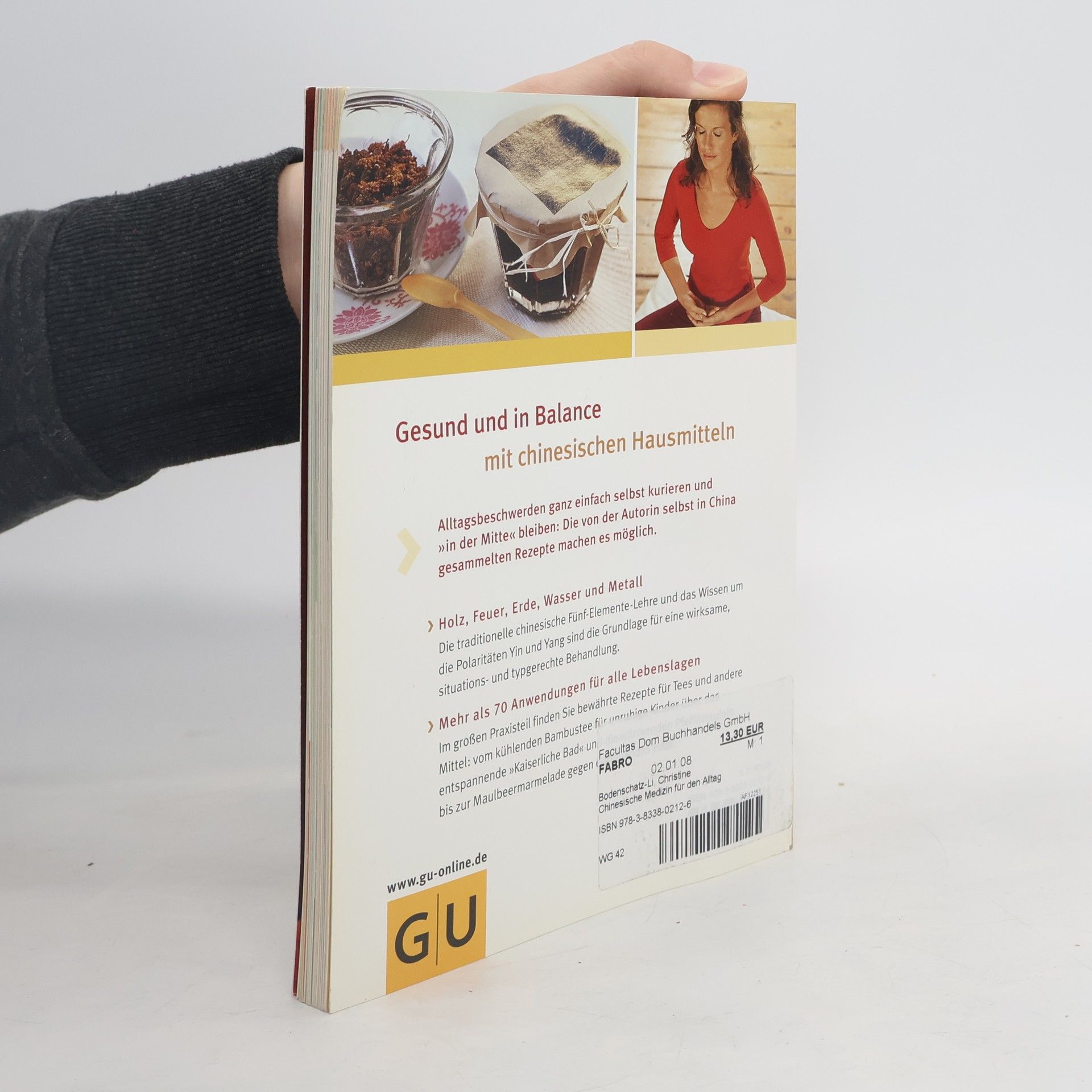 Die Traditionelle Chinesische Medizin basiert auf der Annahme, dass der menschliche Körper Krankheiten bekämpft und sich wieder erholt, wenn er sich im Gleichgewicht der beiden Polaritäten Yin und Yang befindet und genügend Abwehrkräfte hat. Körper, Geist und Seele werden dabei als Einheit verstanden. Die TCM erfreut sich in letzter Zeit zunehmender Anerkennung durch die westliche Medizin. In diesem Ratgeber erläutert die Autorin die Wirkprinzipien der TCM, vor dem Hintergrund der fünf Elemente Erde, Metall, Holz, Feuer und Wasser. Sie stellt eine Fülle von Rezepten und Anwendungen vor, die sie auf ihren Reisen in ländliche Gegenden Chinas gesammelt und selbst erprobt hat. Diese bewährten Hausmittel helfen wirkungsvoll bei Alltagsbeschwerden. Auch für die natürliche Schönheitspflege gibt es zahlreiche Anwendungen. Die Rezepte werden ergänzt durch Empfehlungen aus der TCM, wie man zu einer gesunden, ausgewogenen Lebensweise finden kann.