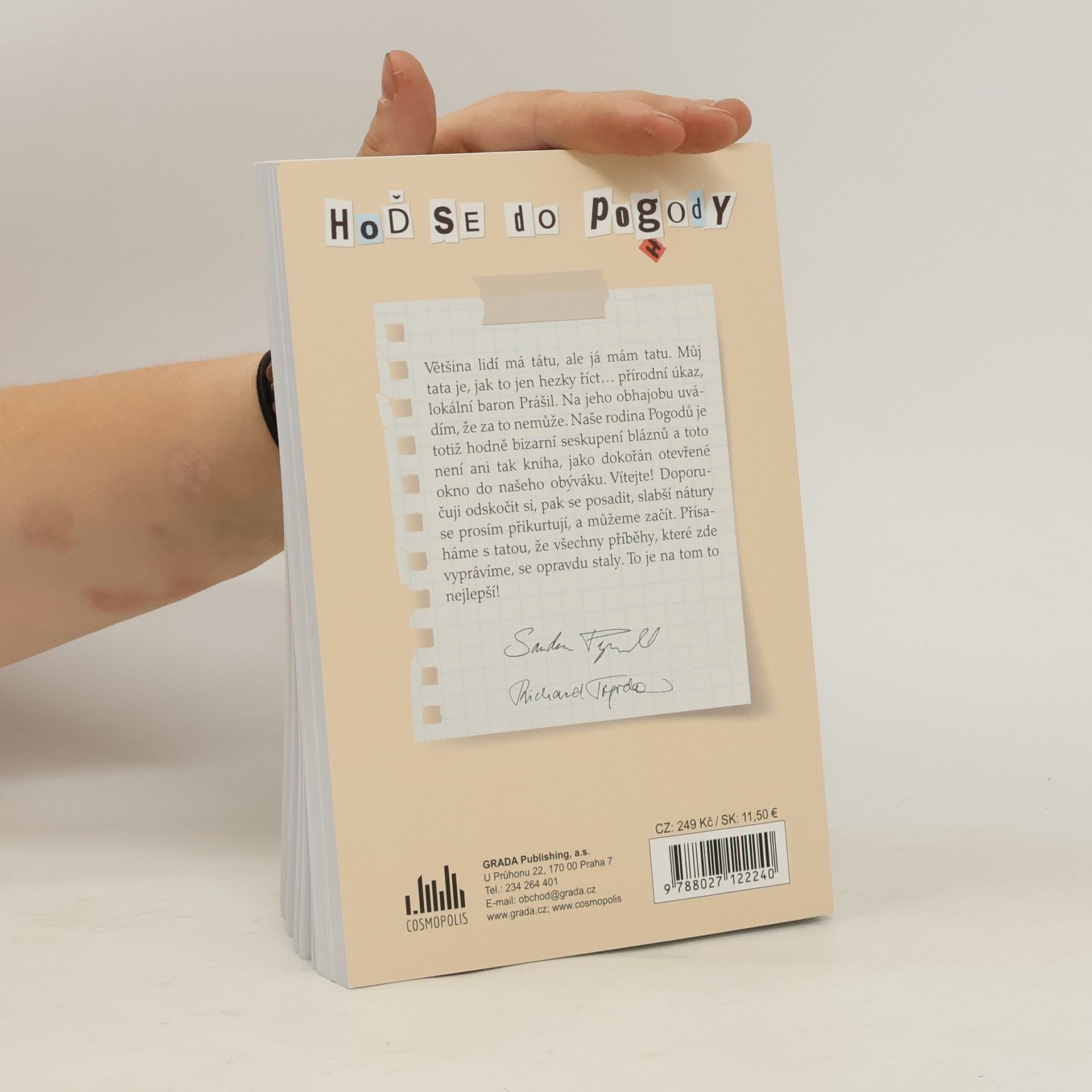 Většina lidí má tátu, ale já mám tatu. Můj tata je, jak to jen hezky říct… přírodní úkaz, lokální baron Prášil. Na jeho obhajobu uvádím, že za to nemůže. Naše rodina Pogodů je totiž hodně bizarní seskupení bláznů a toto není ani tak kniha, jako dokořán otevřené okno do našeho obýváku. Vítejte! Doporučuji odskočit si, pak se posadit, slabší nátury se prosím přikurtují, a můžeme začít. Přísaháme s tatou, že všechny příběhy, které zde vyprávíme se opravdu staly. To je na tom to nejlepší!