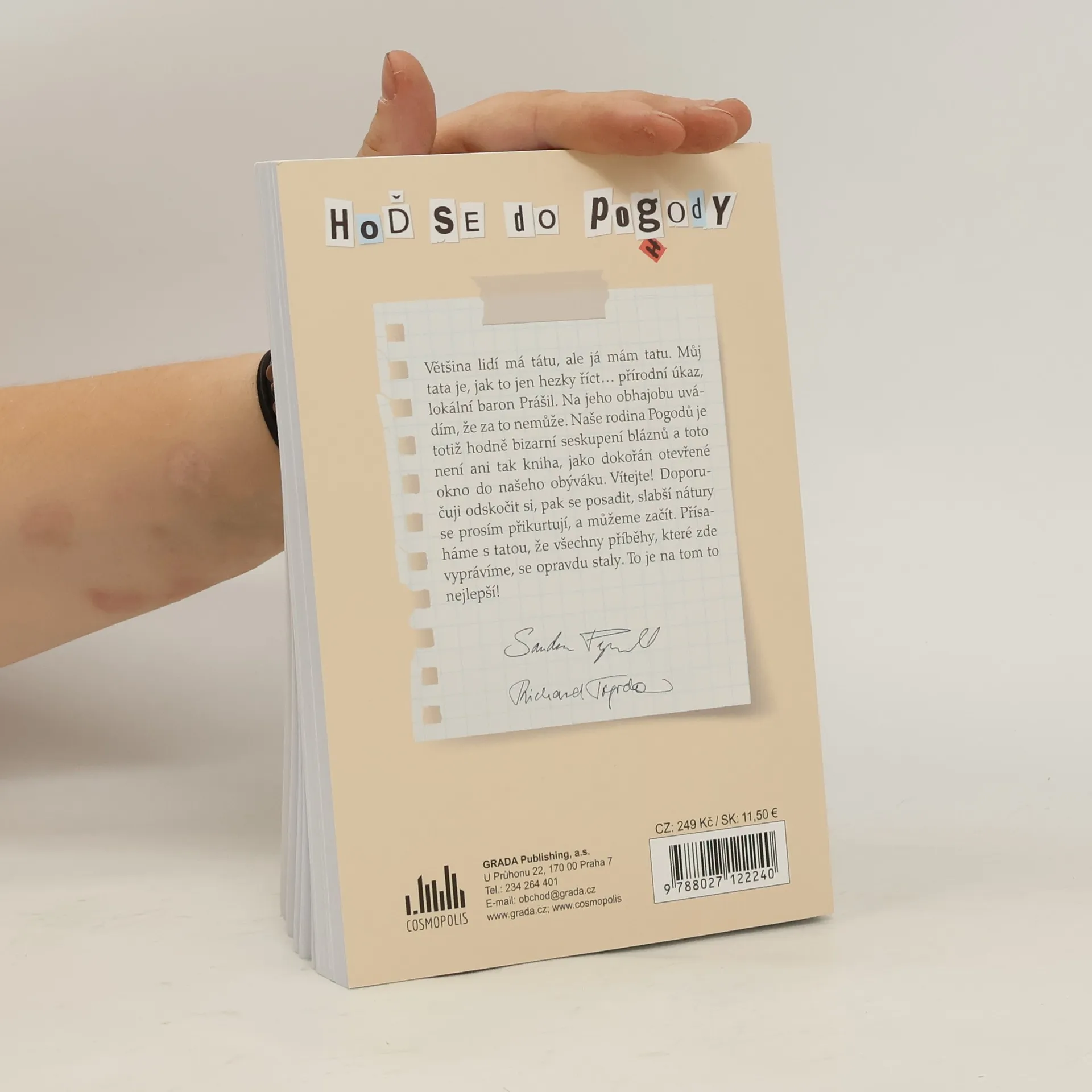 Většina lidí má tátu, ale já mám tatu. Můj tata je, jak to jen hezky říct… přírodní úkaz, lokální baron Prášil. Na jeho obhajobu uvádím, že za to nemůže. Naše rodina Pogodů je totiž hodně bizarní seskupení bláznů a toto není ani tak kniha, jako dokořán otevřené okno do našeho obýváku. Vítejte! Doporučuji odskočit si, pak se posadit, slabší nátury se prosím přikurtují, a můžeme začít. Přísaháme s tatou, že všechny příběhy, které zde vyprávíme se opravdu staly. To je na tom to nejlepší!