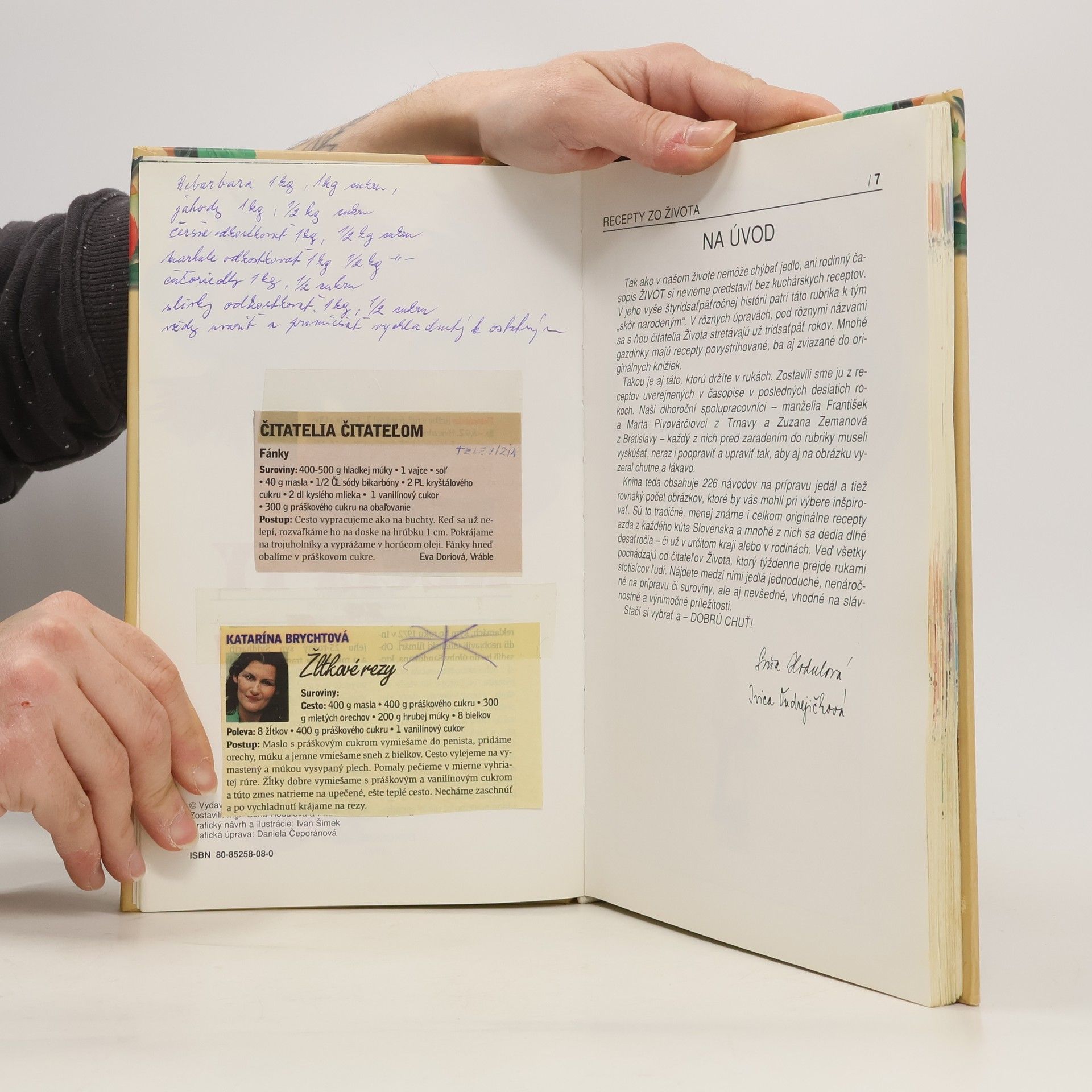 Kniha obsahuje 226 návodov na prípravu jedál a tiež rovnaký počet obrázkov, ktoré by vás mohli pri výbere inšpirovať. Sú to tradičné, menej známe i celkom originálne recepty azda z každého kúta Slovenska a mnohé z nich sa dedia dlhé desaťročia - či už v určitom kraji alebo v rodinách. Čitateľské recepty uverejnené v rodinnom časopise Život v rokoch 1986 - 1996