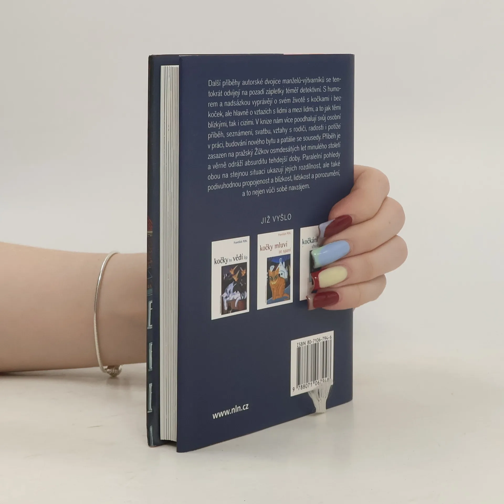 Další příběhy autorské dvojice manželů-výtvarníků se tentokrát odvíjejí na pozadí zápletky téměř detektivní. S humorem a nadsázkou vyprávějí o svém životě s kočkami i bez koček, ale hlavně o vztazích s lidmi a mezi lidmi, a to jak těmi blízkými, tak i cizími, milými i nemilými. V knize nám více poodhalují svůj osobní příběh, seznámení, svatbu, vztahy s rodiči, radosti i potíže v práci, budování nového bytu a patálie se sousedy i jak to bylo s první výstavou.