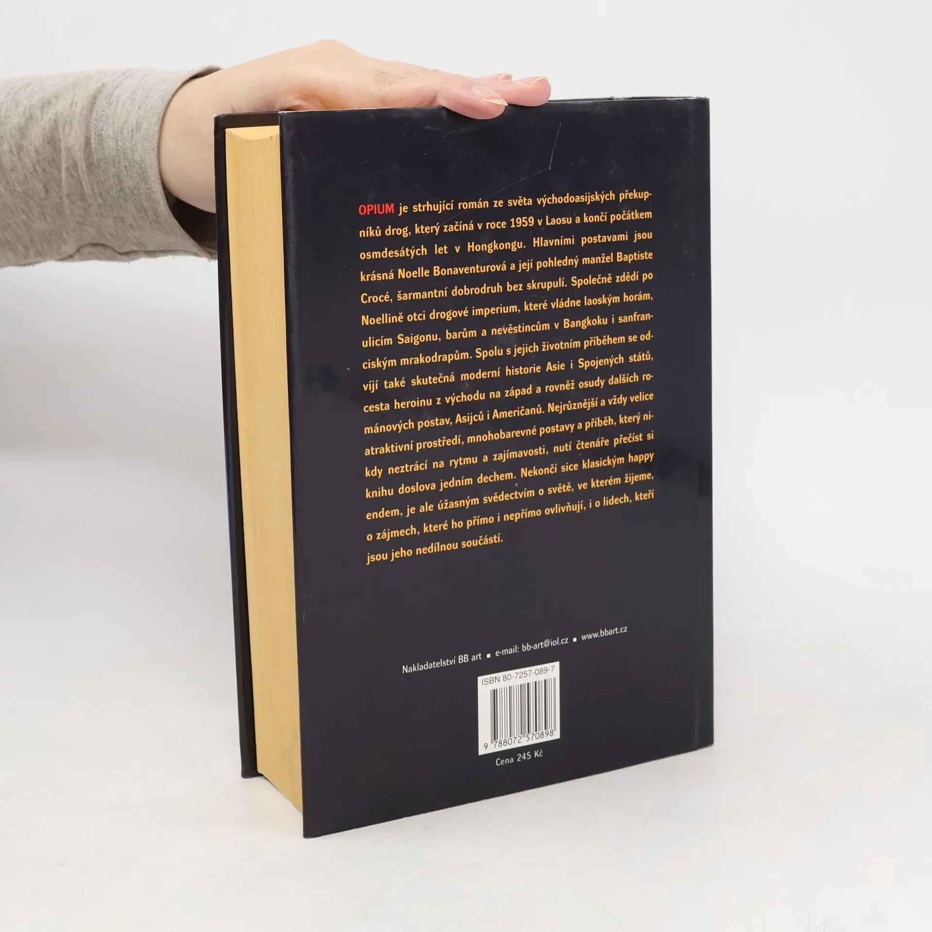 Napínavý román ze světa východoasijských překupníků drog začíná r. 1959 v Laosu a končí počátkem 80. let v Hongkongu. Hlavními postavami je manželská dvojice, která zdědila drogové impérium vládnoucí od Laosu až k San Francisku. Jejich životní peripetie ilustrují historii rozmachu narkomafie ve 20. století a dokládají provázanost obchodu s drogami se společenskými špičkami v Asii i Americe. Děj se odehrává v mnoha atraktivních prostředích, vystupuje zde široká paleta postav z nejrůznějších společenských vrstev a to vše je rámováno osobním příběhem hrdinů, kterým touha po bohatství nepřinesla štěstí. zdroj: mlp.cz