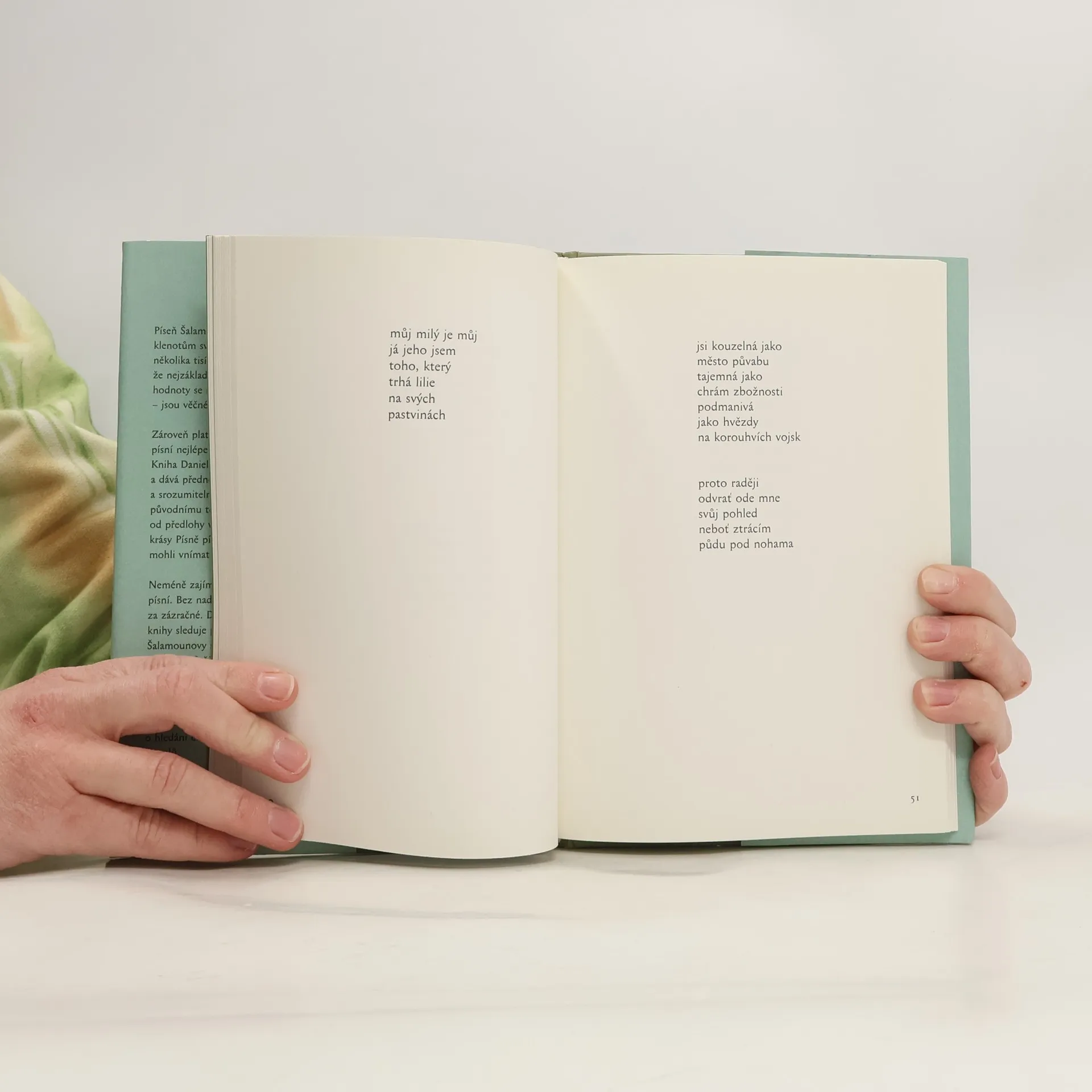 "Budete-li mít doma jenom jednu knihu poezie, měla by to být Píseň písní", říká Daniel Raus, autor nové varianty Písně Šalamounovy. Je to knížka, jejíž napsání i vydání trvalo několik let, ale čekání se v tomto případě vyplatilo. Krása a poetika Písně písní nejlépe vynikne v přebásnění. Kniha Daniela Rause je proto parafrází a dává přednost poetickému půvabu a srozumitelnosti před věrností původnímu textu. Autorův odstup od předlohy vedl paradoxně k oživení krásy Písně písní. Motivem přebásnění je snaha vdechnout život do poetiky tohoto prastarého textu. Když před vámi najednou ožije, zůstanete překvapeni nad jeho aktuálností a barvitostí. Zjistíte, že by mohl být klidně napsán na počátku 21.století. Je přitom starý v bratru 3000 let. Přestože vyšlo mnoho různých překladů Písně Šalamounovy, rychle zjistíte, že vydání téhle knihy není nošením dříví do lesa. Jde totiž o parafrázi, nikoliv další překlad. Poetická krása má jednoznačnou přednost před věrností originálu. Zalistujete-li jejími stránkami, rychle zjistíte, proč. Za zmínku stojí zázračné dějiny Písně písní, alegorie a dramatické interpretace, jakož i místo ženy v téhle knize. Proto je k poetické části doplněn průvodní text. Záměrně to není žádná náročná studie, text je psán novinářsky, takže se lehko čte. Vydáno ve spolupráci s Porta libri.