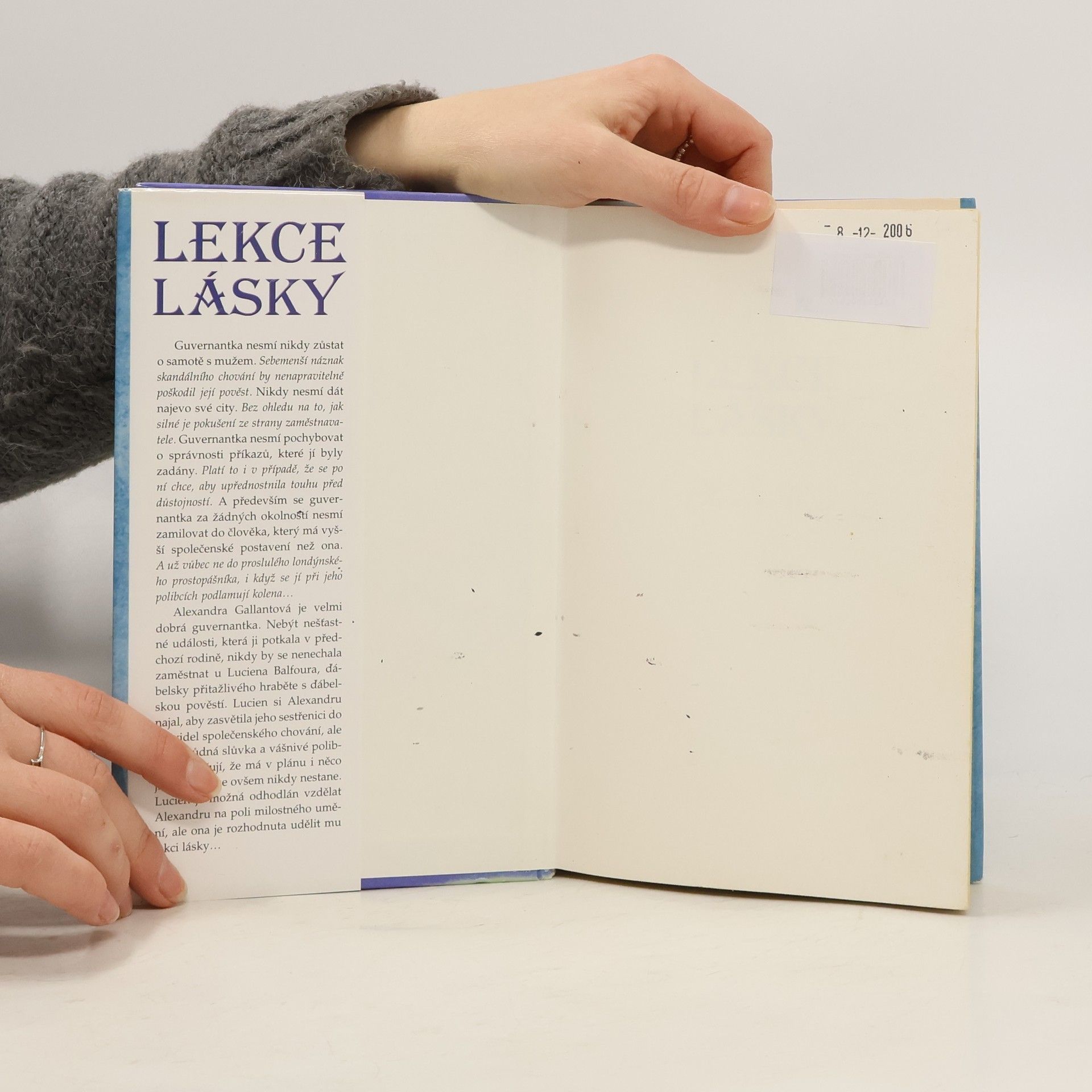 Guvernantka nesmí nikdy zůstat o samotě s mužem. Sebemenší náznak skandálního chování by nenapravitelně poškodil její pověst. Nikdy nesmí dát najevo své city. Bez ohledu na to, jak silné je pokušení ze strany zaměstnavatele. Guvernantka nesmí pochybovat o správnosti příkazů, které jí byly zadány. I když po ní chce, aby upřednostnila touhu před důstojností? A především se za žádných okolností nesmí zamilovat do člověka, který má vyšší společenské postavení než ona. A už vůbec ne do proslulého londýnského prostopášníka, i když se jí při jeho polibcích podlamují kolena... Alexandra Gallantová je velmi dobrá guvernantka. Nebýt nešťastné události, která ji potkala v předchozí rodině, nikdy by se nenechala zaměstnat u Luciena Balfoura, ďábelsky přitažlivého hraběte s ďábelskou pověstí. Lucien si Alexandru najal, aby zasvětila jeho sestřenici do pravidel společenského chování, ale jeho svůdná slůvka a vášnivé polibky naznačují, že má v plánu i něco jiného... To se ovšem nikdy nestane. Lucien je možná odhodlán vzdělat Alexandru na poli milostného umění, ale ona je rozhodnuta udělit mu lekci lásky...