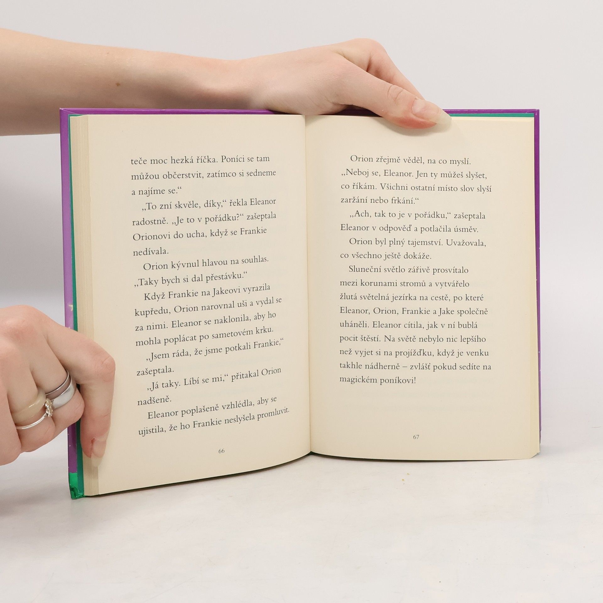 Sláva, jsou tady letní prázdniny! Eleanor se však tolik netěší. Obává se, že na dovolené ji čeká jen nuda a samota. Pak se ale setká s poníkem s hlubokýma, čokoládově hnědýma očima a všechny obavy jsou pryč. Tenhle poník je totiž nejen krásný, ale především kouzelný! Najednou Eleanor ví, že tyhle prázdniny budou nezapomenutelné – plné dobrodružství a nových kamarádů. První vydání.