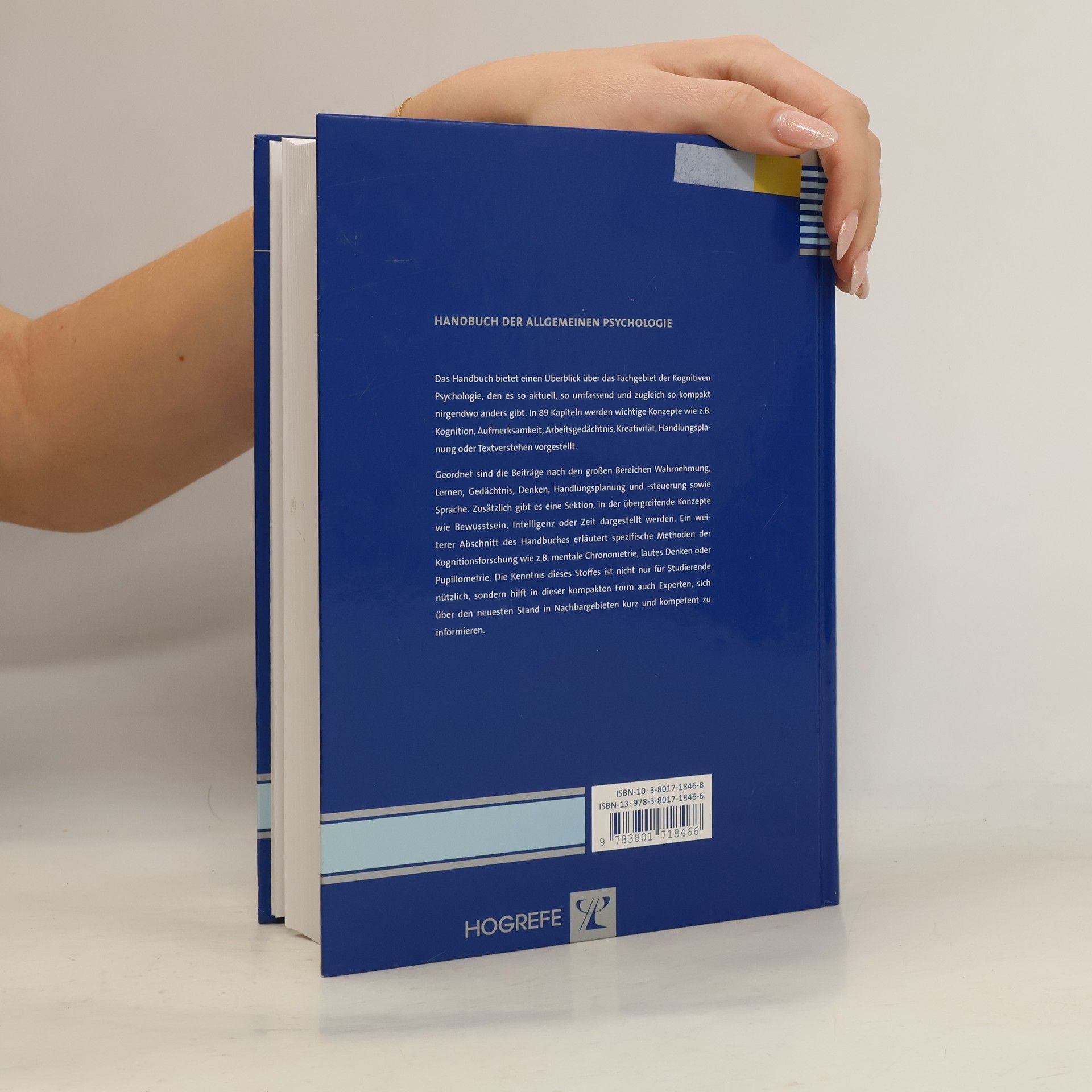 Das Handbuch bietet einen Überblick über das Fachgebiet der Kognitiven Psychologie, den es so aktuell, so umfassend und zugleich so kompakt nirgendwo anders gibt. In 89 Kapiteln werden wichtige Konzepte wie z. B. Kognition, Aufmerksamkeit, Arbeitsgedächtnis, Kreativität, Handlungsplanung oder Textverstehen vorgestellt. Geordnet sind die Beiträge nach den großen Bereichen Wahrnehmung, Lernen, Gedächtnis, Denken, Handlungsplanung und -steuerung sowie Sprache. Zusätzlich gibt es eine Sektion, in der übergreifende Konzepte wie Bewusstsein, Intelligenz oder Zeit dargestellt werden. Ein weiterer Abschnitt des Handbuches erläutert spezifische Methoden der Kognitionsforschung wie z. B. mentale Chronometrie, lautes Denken oder Pupillometrie. Die Kenntnis dieses Stoffes ist nicht nur für Studierende nützlich, sondern hilft in dieser kompakten Form auch Experten, sich über den neuesten Stand in Nachbargebieten kurz und kompetent zu informieren.