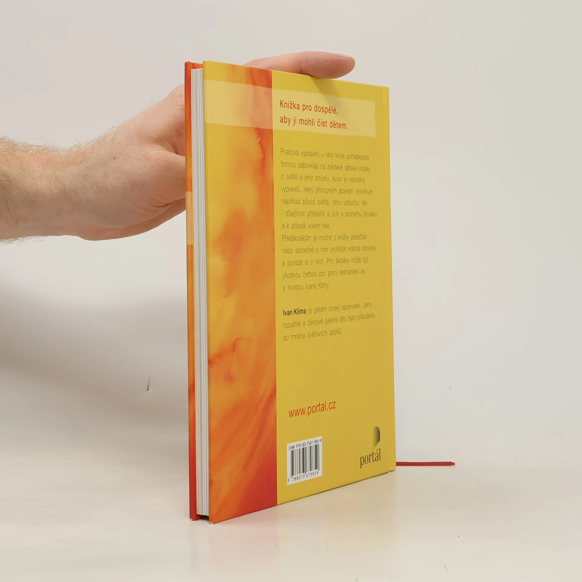 Knížka pro dospělé, aby ji mohli číst dětem. Poetická vyprávění v této knize pohádkovou formou odpovídají na zvědavé dětské otázky o světě jeho smyslu. Autor je výsostný vypravěč, který přístupným jazykem vysvětluje například původ světla, cenu vzduchu, ale i důležitost přátelství a úcty k druhému člověku a k přírodě kolem nás. Předškolákům je možné z knížky předčítat nebo společně s nimi prohlížet krásné obrázky a povídat si o nich. pro školáky může být vhodnou četbou pro první seznámení se s tvorbou Ivana Klímy.