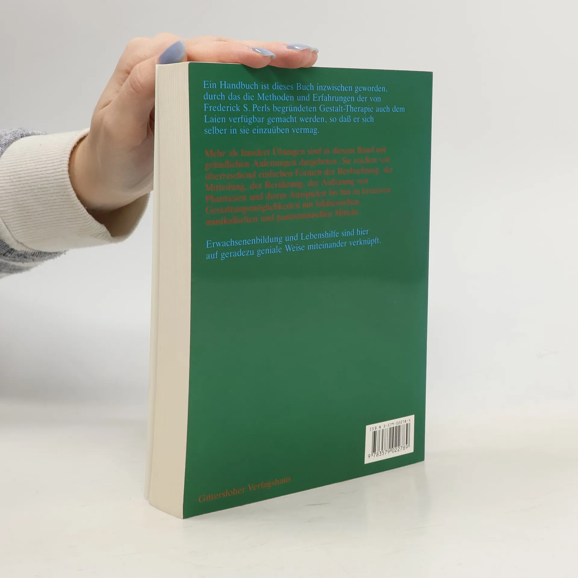 Ein Handbuch ist dieses Buch inzwischen geworden, durch das die Methoden und Erfahrungen der von Frederick S. Perls begründeten Gestalt-Therapie auch dem Laien verfügbar gemacht werden, so daß er sich selber in sie einzuüben vermag. Mehr als hundert Übungen sind in diesem Band mit gründlichen Anleitungen dargeboten. Sie reichen von überraschend einfachen Formen der Beobachtung, der Mitteilung, der Berührung, der Äußerung von Phantasien und ihrem Ausspielen bis hin zu kreativen Gestaltungsmöglichkeiten mit bildnerischen, musikalischen und pantomimischen Mitteln. Erwachsenenbildung und Lebenshilfe sind hier auf geradezu geniale Weise miteinander verknüpft.