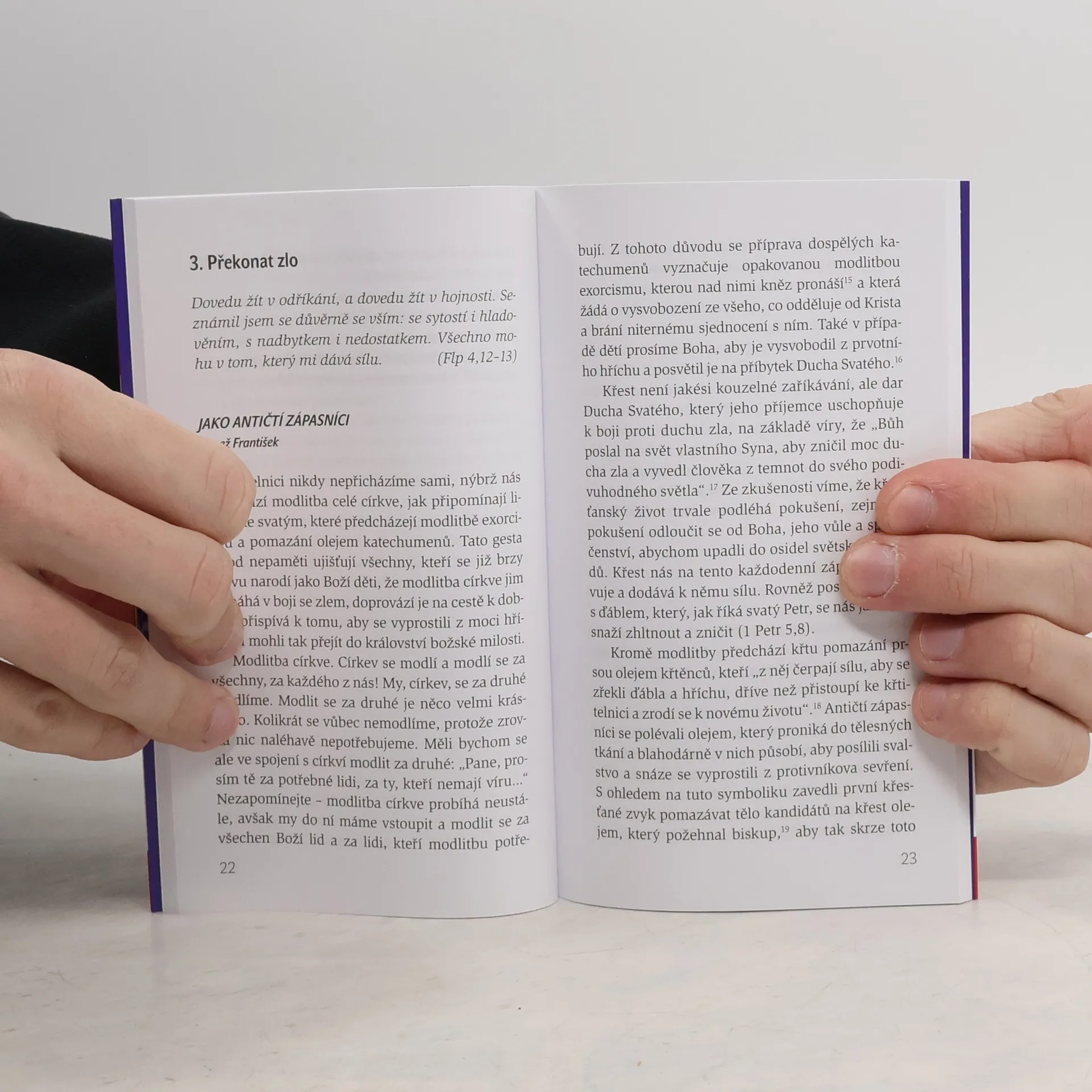Základem knížky je devět promluv papeže Františka věnovaných křtu a biřmování. Kněz Radek k nim připojuje svoji úvahu, inspirativní slovo církevních otců, otázky k zamyšlení a osobní modlitbu. Knížka poslouží všem, kteří byli pokřtěni jako malé děti, těm, kdo se po křtu v dospělosti chtějí ohlédnout za důležitou událostí svého života, i čerstvě biřmovaným, aby se milost, kterou přijali, nevytratila ve víru každodenního života. Užitečná je i pro všechny, kdo se před Velikonocemi připravují na obnovu křestních závazků. Kapitolky lze číst soukromě i při setkávání malého společenství