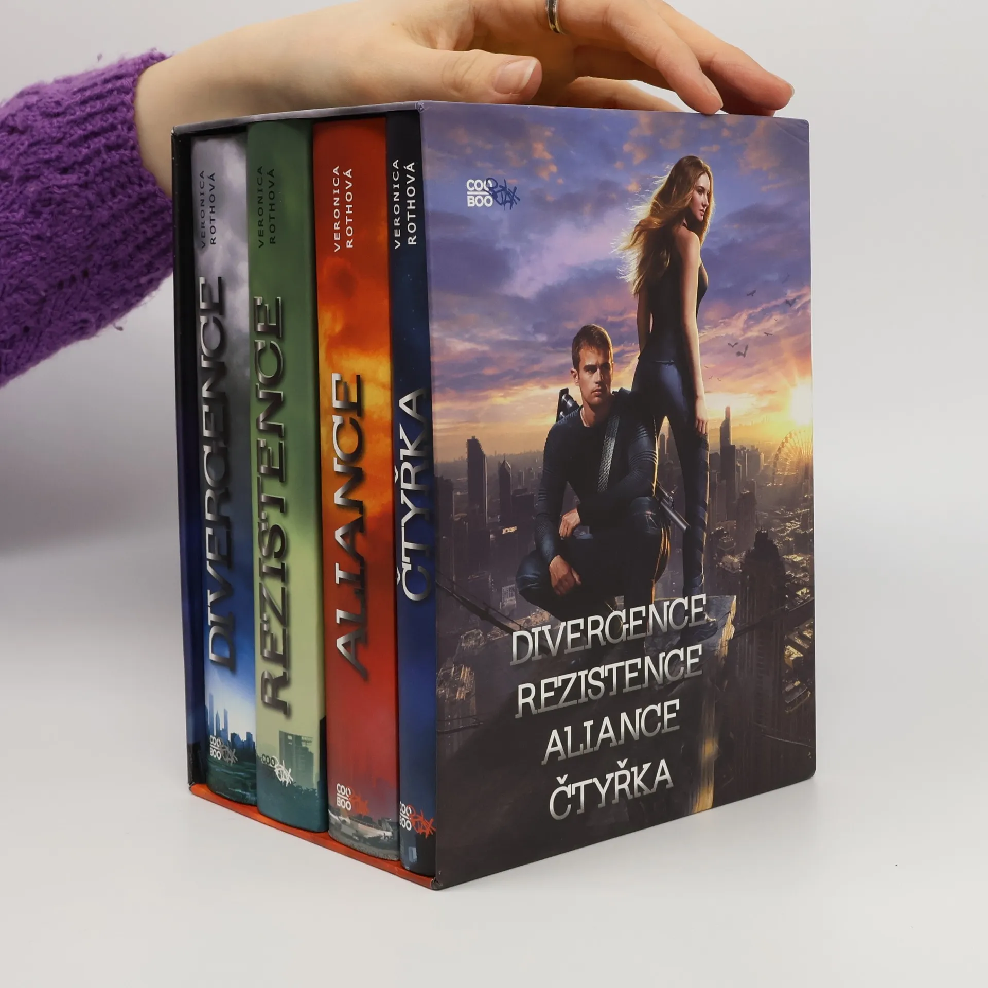 Kompletní divergentní trilogie v jednom boxu a navíc příběhy z pohledu Čtyřky. Ideální dárek pro vaše blízké! Chicago, budoucnost. Obyvatelé města, které obklopuje jen močál a obepíná ostnatý drát, jsou rozděleni do pěti frakcí. Beatrice je čerstvých šestnáct a přišel čas vybrat, do které frakce chce patřit, které ctnosti se chce na celý život odevzdat. Překvapivé rozhodnutí, osudová láska a nebezpečí. To všechno v jednom boxu. A navíc příběhy z pohledu Čtyřky!