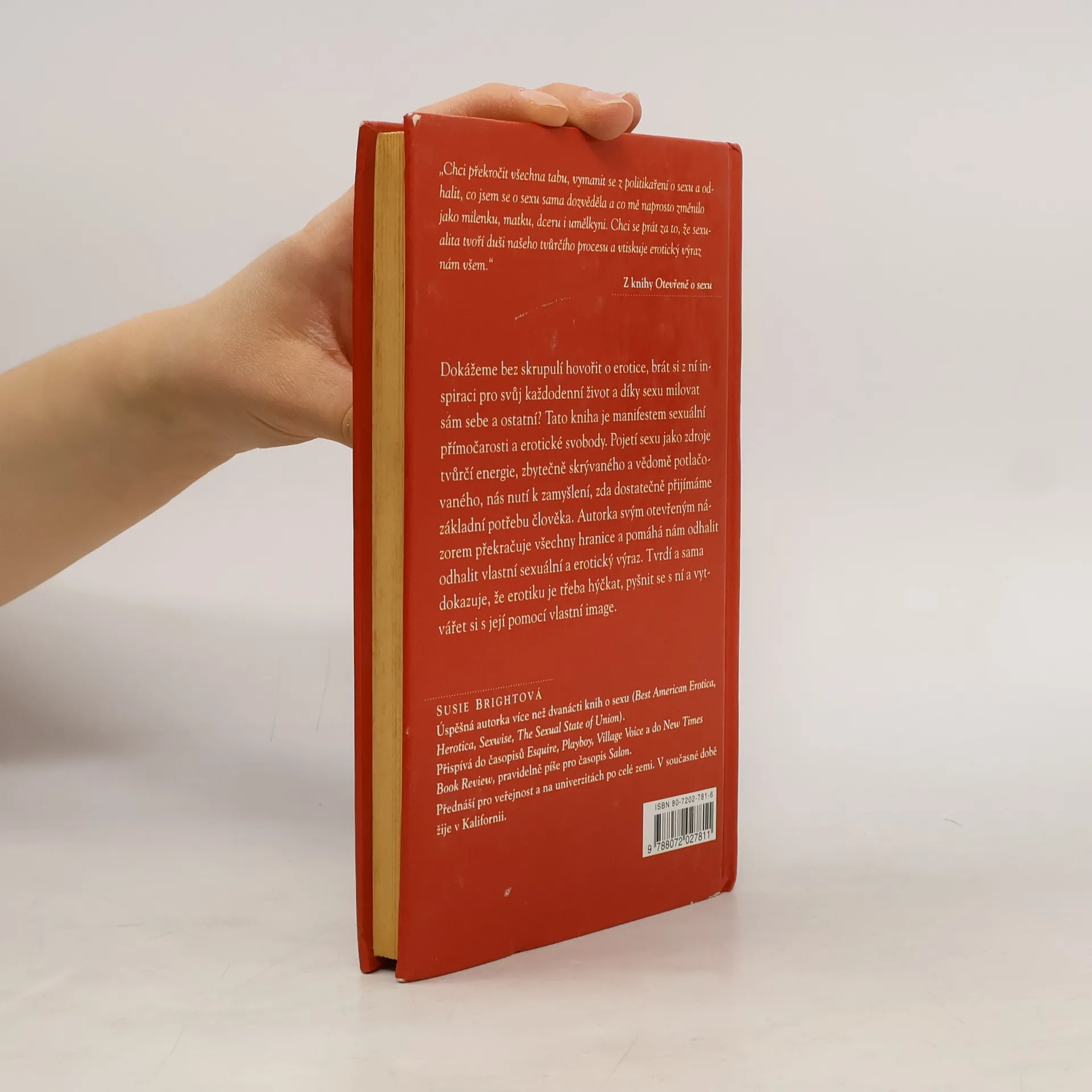 Dokážeme bez skrupulí hovořit o erotice, brát si z ní inspiraci pro svůj každodenní život a díky sexu milovat sám sebe a ostatní? Tato kniha je manifestem sexuální přímočárosti a erotické svobody. Pojetí sexu jako zdroje tvůrčí energie, zbytečně skrývaného a vědomě potlačovaného, nás nutí k zamyšlení, zda dostatečně přijímáme základní potřebu člověka. Autorka svým otevřeným názorem překračuje všechny hranice a pomáhá nám odhalit vlastní sexuální a erotický výraz. Tvrdí a sama dokazuje, že erotiku je třeba hýčkat, pyšnit se s ní a vytvářet si s její pomocí vlastní image.