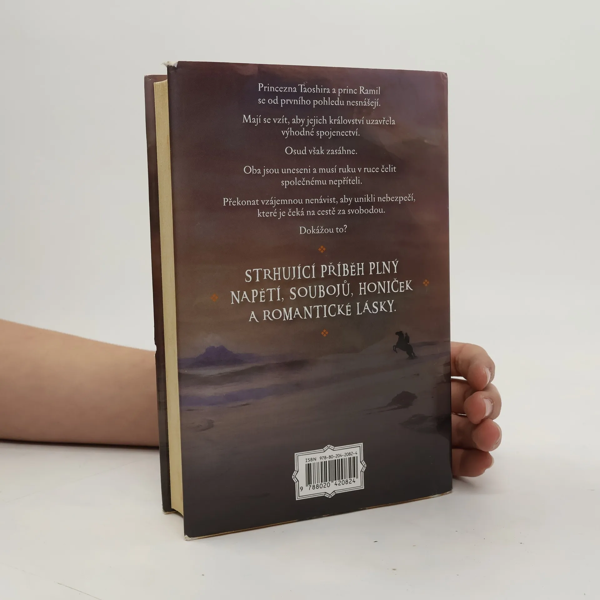 Princezna Taoshira a princ Ramil mají z vůle vládců svých zemí uzavřít výhodný sňatek. Ani jeden není nadšen, protože už při prvním setkání k sobě cítí silné nesympatie. Osud je ovšem svede dohromady prostřednictvím společného nepřítele. Oba jsou uneseni a budou muset překonat vzájemnou nenávist, aby unikli celé řadě nebezpečí, která je na útěku čekají. Kniha nabitá akcí, souboji, honičkami i romantickou láskou od význačné britské autorky.