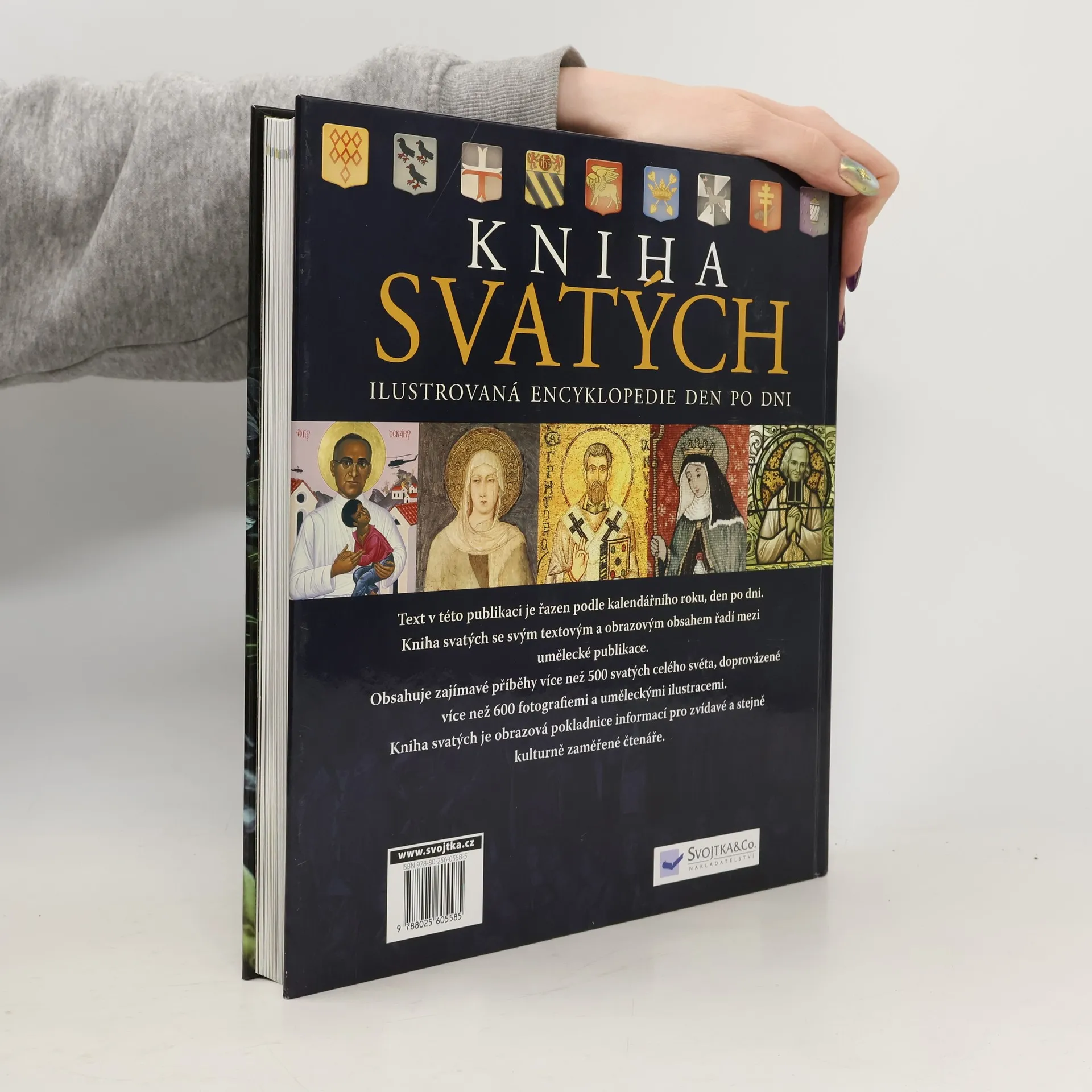 Kniha svatých je výpravná ilustrovaná publikace nejen pro věřící, ale pro každého kulturního a vzdělaného člověka, který se zajímá o historii. Je zpracována v moderním a ekumenickém duchu. Příběhy světců jsou nad pomyšlení vzrušující a dobrodružné. V těchto výjimečných lidech planul oheň, chránili hluboké tajemství a současně zářili samozřejmostí nadpřirozeného, díky které umožňovali vnímat blízkost Boha. Fascinovali své vrstevníky a jejich poselství je stále živé. Odkaz světců jde napříč církvemi a denominacemi. Původní a nejbohatší základnou pro kalendář světců je katolická církev a její římský kalendář. K tomu se pojí liturgický kalendář protestantských církví se zvláštním důrazem na diecéze USA, dále lekcionář anglikánské církve a pak několik vybraných zástupců širého moře pravoslavných svatých mužů. V několika případech jsou zmíněny i inspirativní postavy, které dosud nebyly svatořečeny nebo čekají na blahořečení, a které svým životem zůstávají velkým vzorem pro mnoho lidí na celé planetě. Text je doplněn tisíci reprodukcemi obrazů převzatých z galerií, muzeí, kostelů a mezinárodních archivů fotografií. Mnohé ilustrace jsou uměleckými klenoty a v popiskách k nim se čtenáři dozvědí o jejich původu, historii a umístění. Kniha svatých každý den připomíná, že ke svatosti jsme zrozeni všichni, i když každý jiným způsobem. Encyklopedie na každý den.
