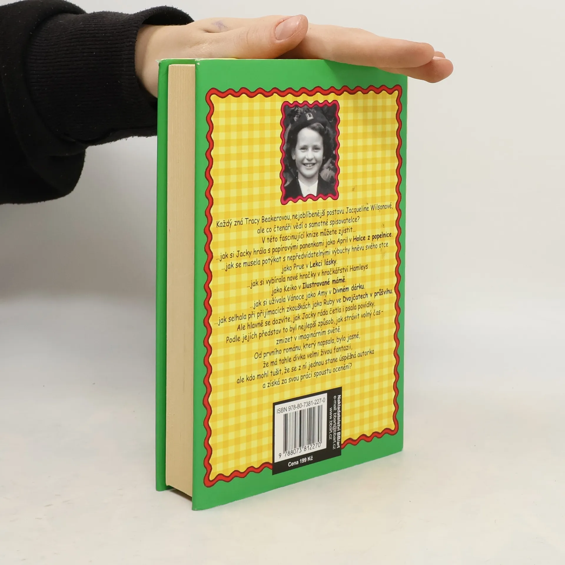 Životopis oblíbené spisovatelky. Každý zná Tracy Beakerovou, nejoblíbenější postavu Jacqueline Wilsonové, ale co čtenáři vědí o samotné spisovatelce? V této fascinující knize můžete zjistit… Dozvíte se, jak Jacky ráda četla i psala povídky. Podle jejích představ to byl nejlepší způsob, jak strávit volný čas - zmizet v imaginárním světě. Od prvního románu, který napsala - Seznamte se s Larvovými - bylo jasné, že má tahle dívenka velmi živou fantazii, ale kdo mohl tušit, že se z ní jednou stane spisovatelka a získá za svou práci spoustu ocenění? Jacqueline Wilsonová se narodila v Bathu roku 1945, ale téměř celý svůj život prožila v Kingstonu nad Temží. Odmalička chtěla být spisovatelkou. Pracovala v jednom nakladatelství a jako novinářka. V současné době žije v Surrey a má jednu dospělou dceru.