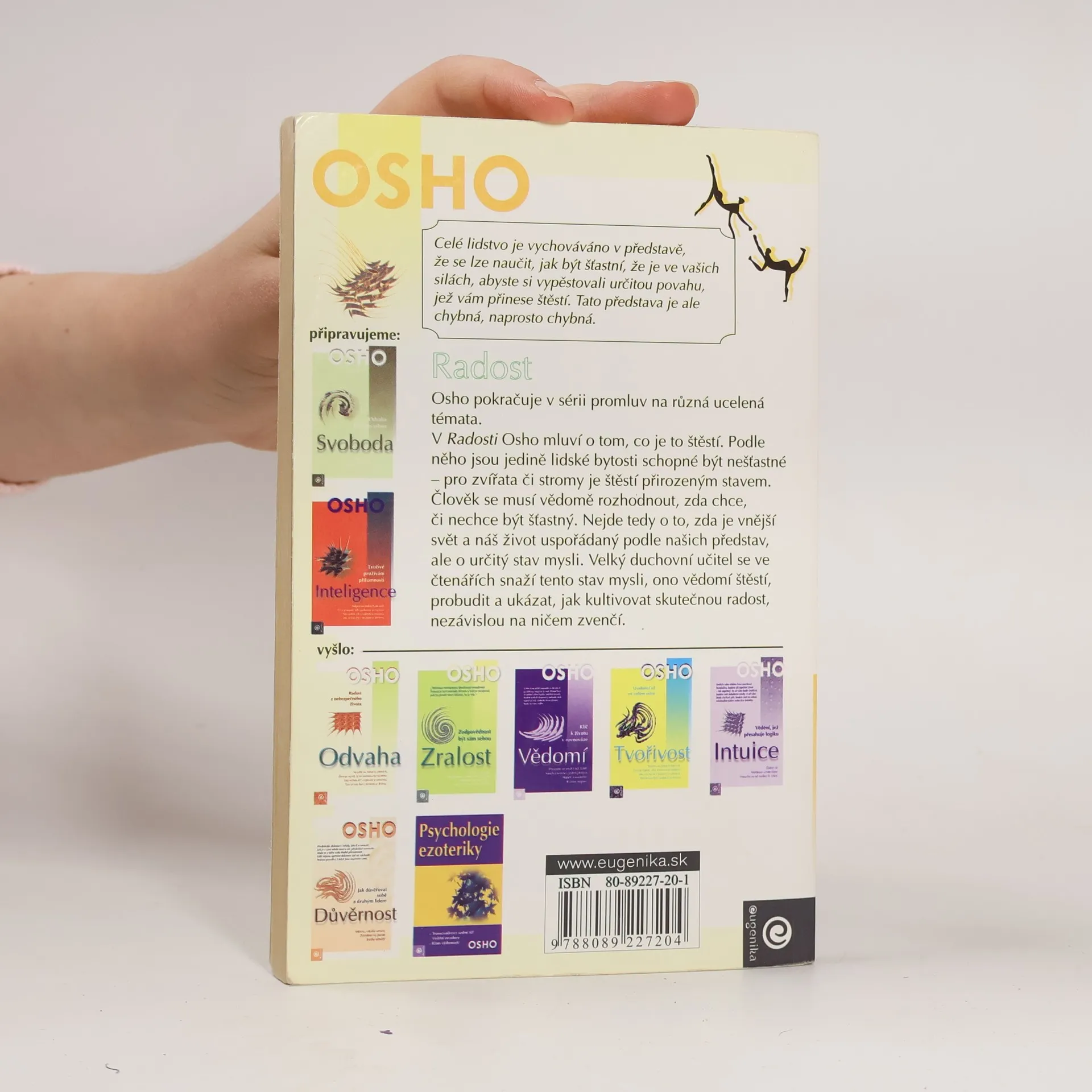 Osho pokračuje v sérii promluv na různá ucelená témata. V Radosti Osho mluví o tom, co je štěstí. Podle něho jsou jedině lidské bytosti schopné být nešťastné - pro zvířata či stromy je štěstí přirozeným stavem. Člověk se musí vědomě rozhodnout, zda chce, či nechce být šťastný. Nejde tedy o to, zda je vnejší svět a náš život uspořádaný podle našich představ, ale o určitý stav mysli. Velký duchovní učitel se ve čtenářích snaží tento stav mysli, ono vědomí šťěstí, probudit a ukázat, jak kultivovat skutečnou radost, nezávislou na ničem zvenčí.