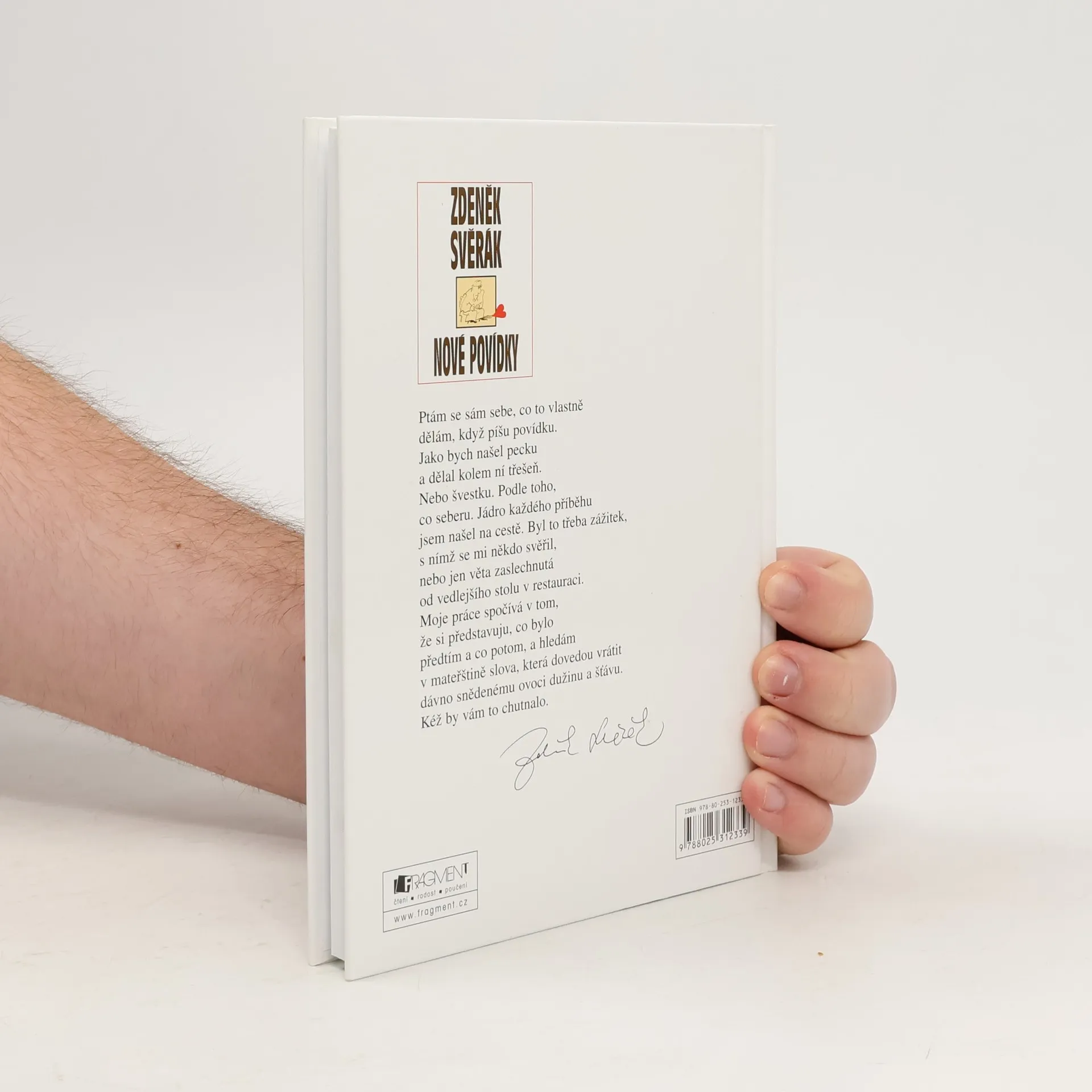 Ptám se sám sebe, co to vlastně dělám, když píšu povídku. Jako bych našel pecku a dělal kolem ní třešeň. Nebo švestku. Podle toho, co seberu. Jádro každého příběhu jsem našel na cestě. Byl to třeba zážitek, s nímž se mi někdo svěřil, nebo jen věta zaslechnutá od vedlejšího stolu v restauraci. Moje práce spočívá v tom, že si představuju, co bylo před tím a co potom, a hledám v mateřštině slova, která dovedou vrátit dávno snědenému ovoci dužinu a šťávu. Kéž by vám to chutnalo. Zdeněk Svěrák