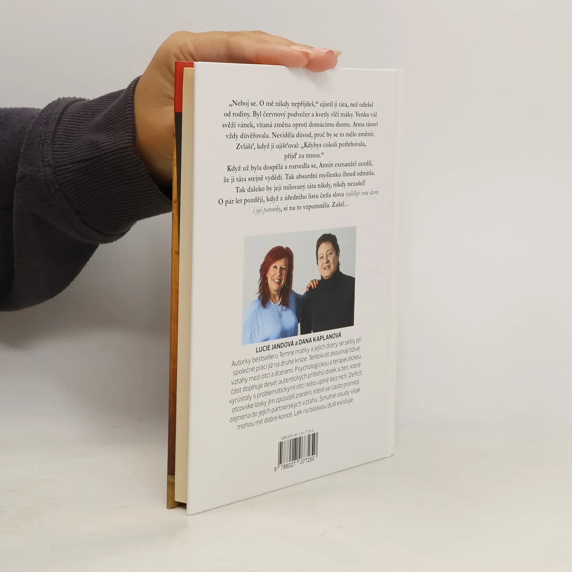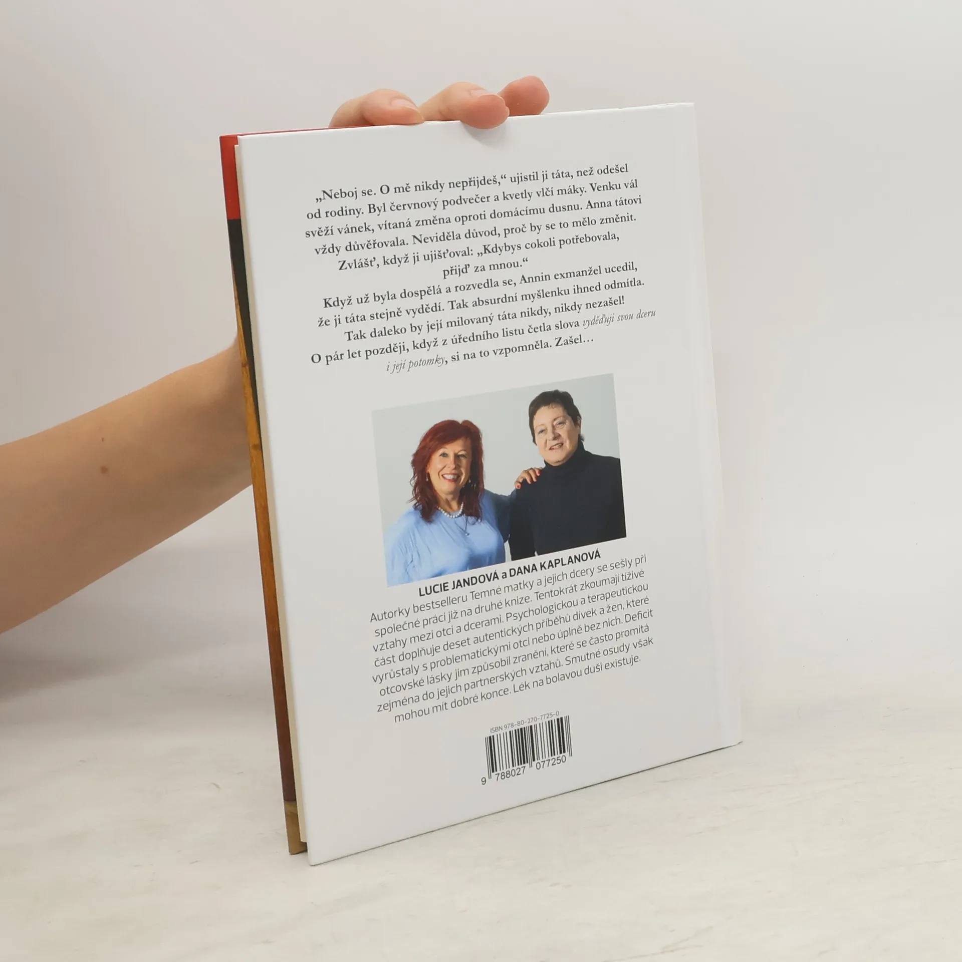 Otcovské zranění je tématem další knihy autorského tandemu Lucie Jandová a Dana Kaplanová. Po úspěšném bestselleru Temné matky a jejich dcery přicházejí s knihou, která se pouští do problematiky tíživých vztahů mezi dcerami a otci. Dopad nefunkčních vazeb, ať už proto, že otec v rodině chyběl, opustil ji, nebo nenaplnil otcovskou roli, bývají pustošivé. Předobraz prvního muže v životě ženy ovlivňuje její partnerské vztahy. Neexistuje důkaz, že každá žena, která má vztahové problémy, prožila zranění od otce. Ale ta, co ho prožije, problémy ve vztazích mívá. Až to vyvolává dojem zákonitého procesu, zaznívá v knize. Autorky se však nespokojily s poukazem na neutěšenost takového stavu, ale hledají řešení. Zamýšlejí se nad otcovstvím jako takovým i nad historickými a společenskými souvislostmi, které ho utvářely. Dospívají k závěru, že zdravá mužská síla ve společnosti chybí a otcovství je třeba vrátit jeho důležitost. V knize zaznívají názory odborníků a psychologů a je doplněna autentickými příběhy žen, které se rozhodly o svém vztahu a otcem a partnery promluvit veřejně.