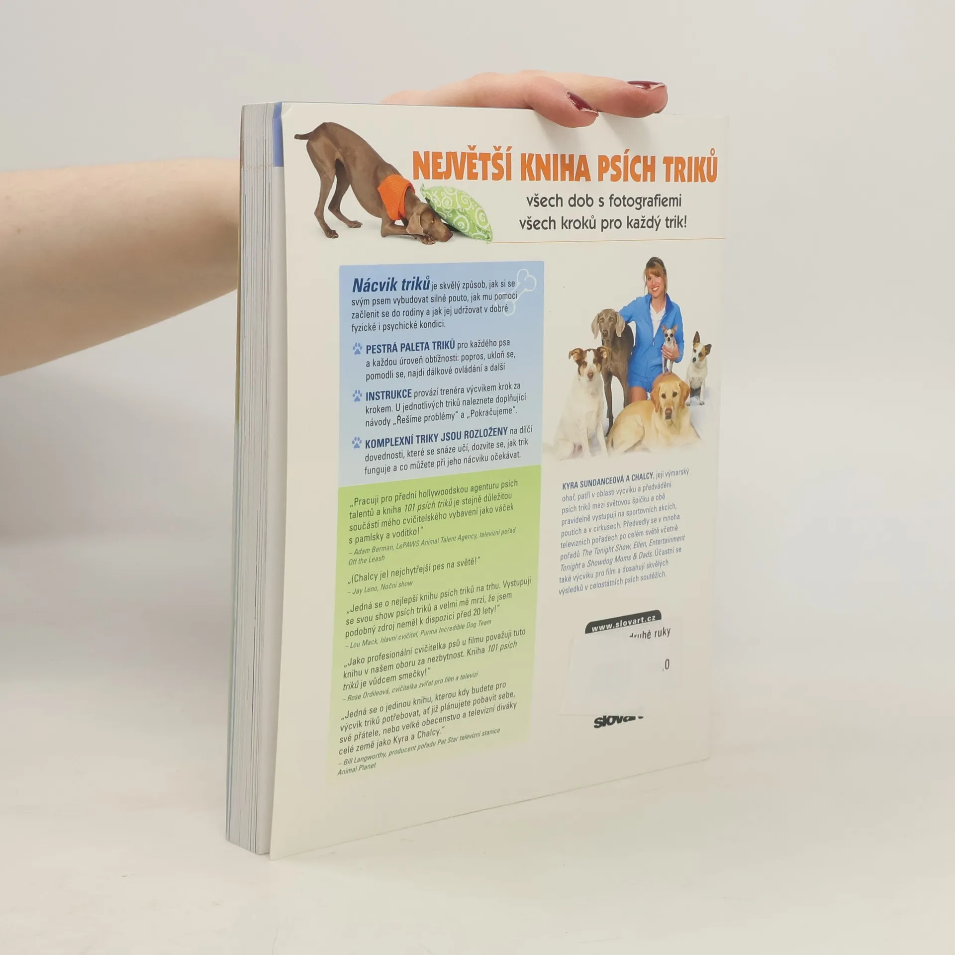 Největší kniha psích triků všech dob s fotografiemi postupných kroků. Nácvik triků je skvělý způsob, jak si můžete se svým psem vybudovat silné pouto, jak mu pomoci začlenit se do rodiny a jak jej udržovat v dobré fyzické i psychické kondici. Komplexní triky jsou rozloženy na dílčí dovednosti, které se snáze učí, a dozvíte se, jak trik funguje a co můžete při jeho nácviku očekávat.
