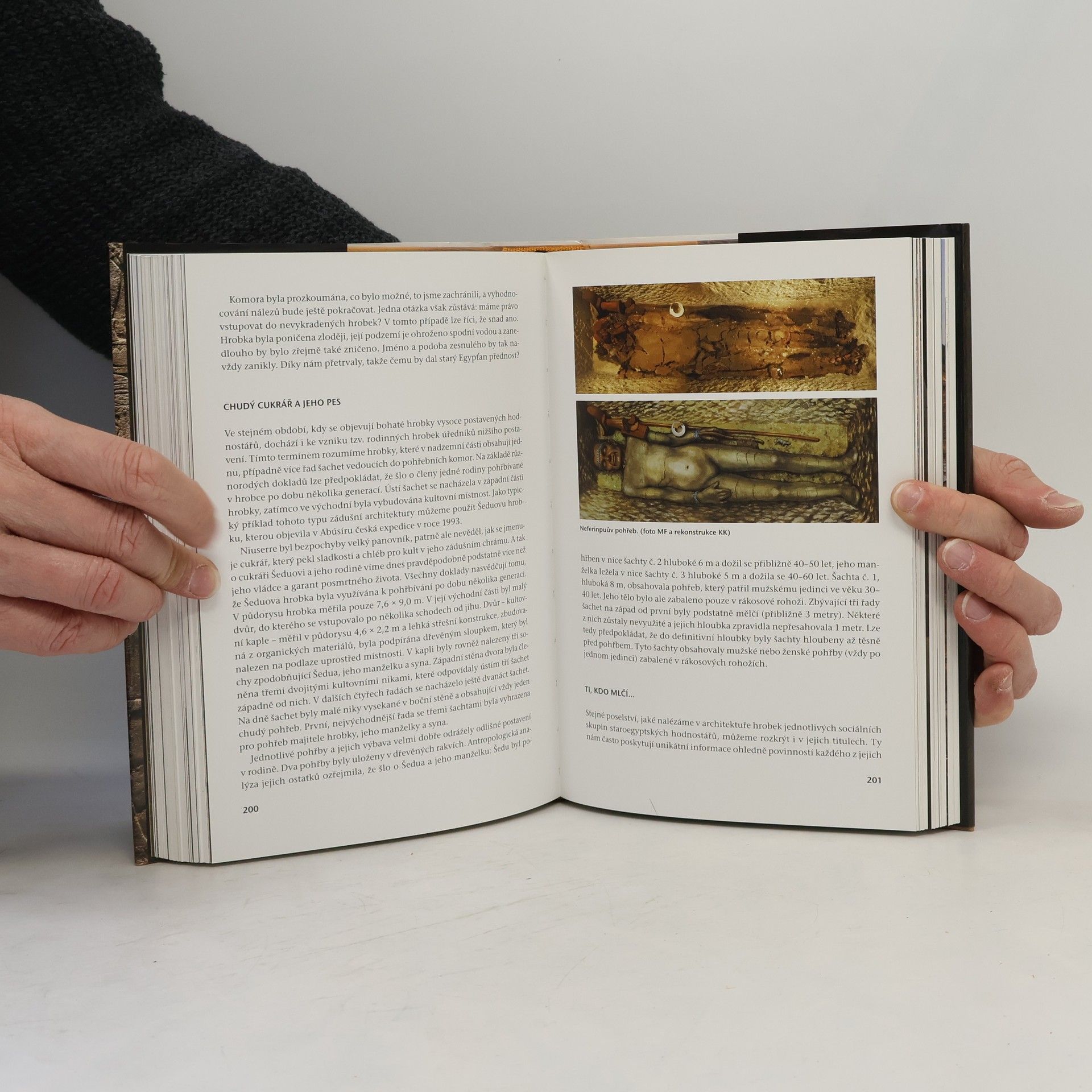 Staroegyptská hrobka a společnost v době stavitelů pyramid Staré říše Autor líčí všední život ve starověkém Egyptě v době jeho nejslavnější historie - v době budování pyramid – na základě dochovaných nekrálovských hrobek z 3. tisíciletí př. Kr. Egypťané věřili, že život na onom světě je podobný tomu pozemskému, a tak hrobky byly zdobeny nejen texty, ale i scénami z každodenního života, náboženskými motivy i tematikou vlastního pohřbu. Některé z těchto hrobek patří mezi poklady světového kulturního dědictví. Autor popisuje vývoj takové hrobky v průběhu staletí a nabízí nový pohled nejen na vznik slavné epochy stavitelů pyramid, ale i na její tajemstvím zahalený zánik. Značná část unikátní obrazové dokumentace je zde publikována poprvé.