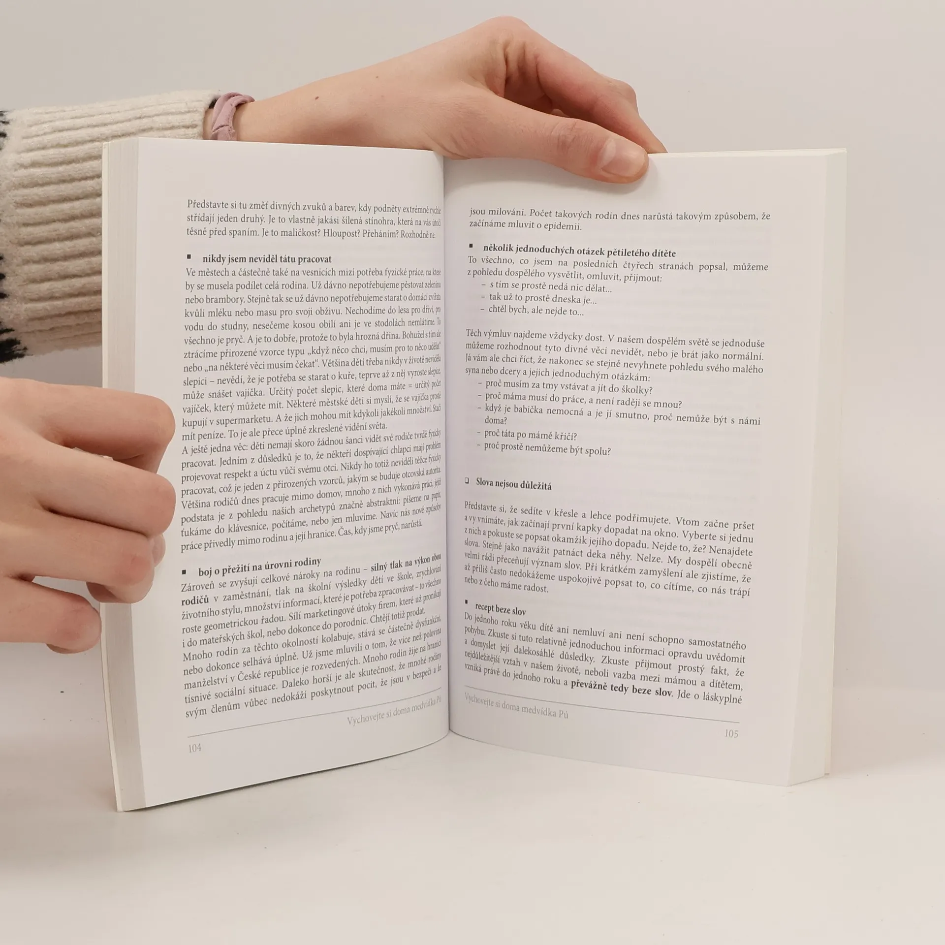 Kniha je cenná hlavně tím, že je napsána odborně, přitom naprosto srozumitelně, autor si s pomyslným čtenářem vlastně povídá. Objevíte v ní svěží pohledy a úvahy z oblasti sebepoznání, mezilidských vztahů a výchovy malých dětí. Dozvíte se informace, o kterých s překvapením zjistíte, že je prostě potřebujete k tomu, abyste mohli vést spokojený život. Text v knize je silný a místy až naléhavý a zejména vás zaujme to, s jakým citem Marek Herman popisuje svět malých dětí.