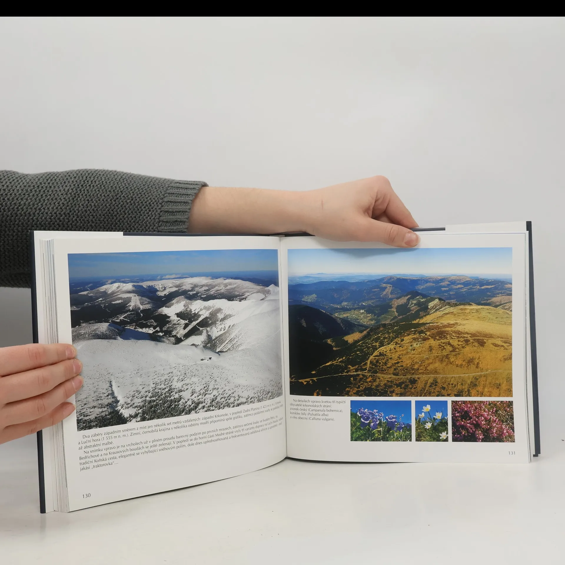 Fotografická publikace Krkonoše z letadla, známého krkonošského fotografa Petra Tomana. Kniha obsahuje celkem 210 fotografií, z toho 150 leteckých, převážně ve velikosti A3-A5. Mapuje Krkonoše od východu na západ ve všech ročních obdobích. Letecké fotografie jsou doplněny malými obrázky ze země, aby čtenář viděl i rozdíl mezi pohledem pěšího turisty a pohledem z letadla. Je doplněna texty nejen popisnými, ale i zajímavostmi z geologie, botaniky, historie, perličkami vstahujícími se k danému popisovanému obrazu. Autory textu jsou redaktoři časopisu Krkonoše a Jizerské hory