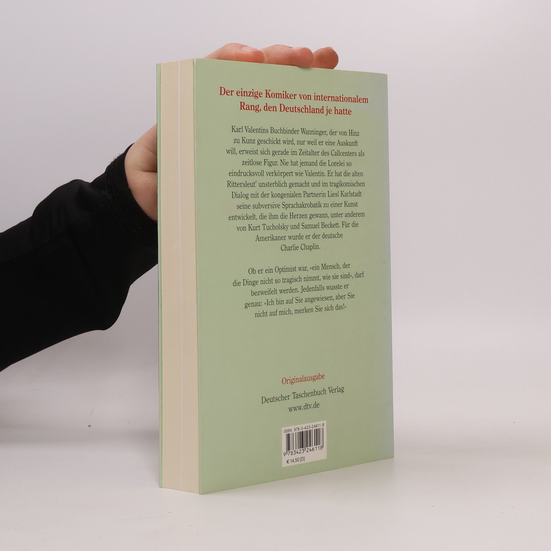 Der einzige Komiker von internationalem Rang, den Deutschland je hatte »Mögen hätte ich schon wollen, aber dürfen habe ich mich nicht getraut.« Karl Valentins Buchbinder Wanninger, der von Hinz zu Kunz geschickt wird, nur weil er eine Auskunft will, erweist sich gerade im Zeitalter des Callcenters als zeitlose Figur. Nie hat jemand die Lorelei so eindrucksvoll verkörpert wie Valentin. Er hat die alten Rittersleut' unsterblich gemacht und im tragikomischen Dialog mit der kongenialen Partnerin Liesl Karlstadt seine subversive Sprachakrobatik zu einer Kunst entwickelt, die ihm die Herzen gewann, unter anderem von Kurt Tucholsky und Samuel Beckett. Für die Amerikaner wurde er der deutsche Charlie Chaplin. Ob er ein Optimist war, »ein Mensch, der die Dinge nicht so tragisch nimmt, wie sie sind«, darf bezweifelt werden. Jedenfalls wusste er genau: »Ich bin auf Sie angewiesen, aber Sie nicht auf mich, merken Sie sich das!«