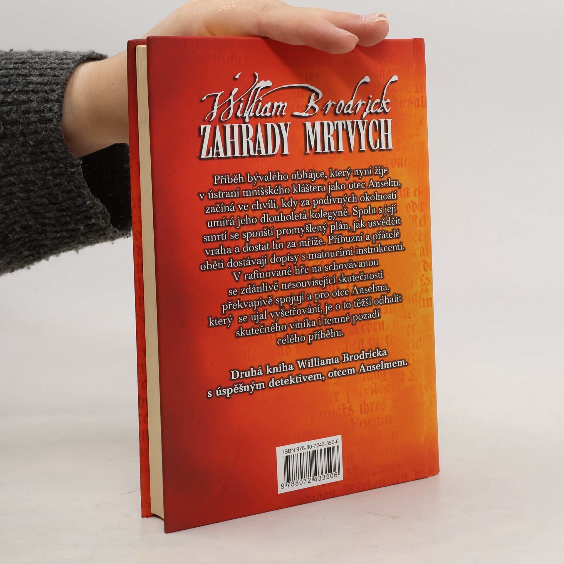 Příběh bývalého obhájce, který nyní žije v ústraní mnišského kláštera jako otec Anselm, začíná ve chvíli, kdy za podivných okolností umírá jeho dlouholetá kolegyně. Spolu s její smrtí se spouští promyšlený plán, jak usvědčit vraha a dostat ho za mříže. Příbuzní a přátelé oběti dostávají dopisy s matoucími instrukcemi. V rafinované hře na schovávanou se zdánlivě nesouvisející skutečnosti překvapivě spojují a pro otce Anselma, který se ujal vyšetřování, je o to těžší odhalit skutečného viníka i temné pozadí celého příběhu. Druhá kniha Williama Brodricka s úspěšným detektivem, otcem Anselmem.