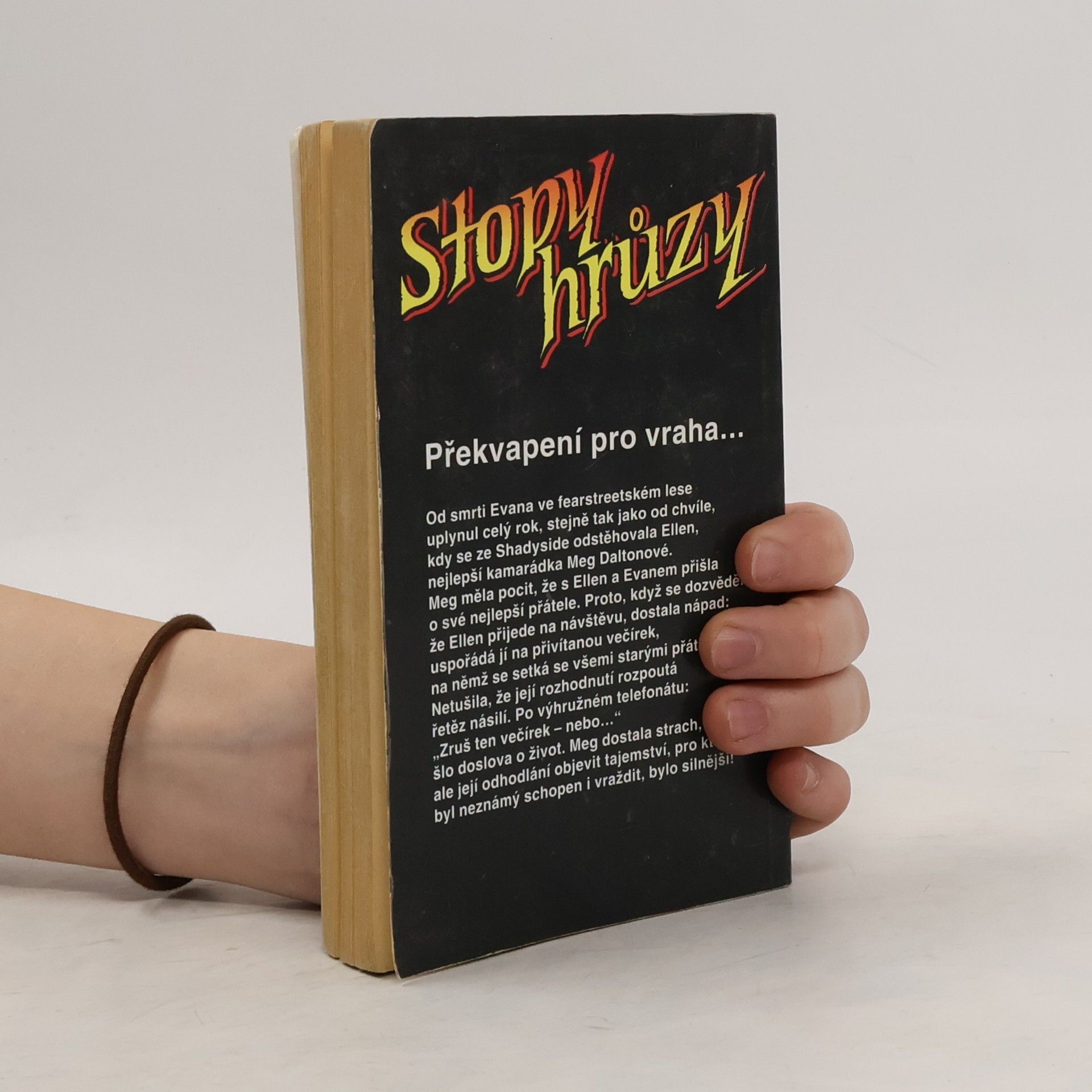 Stopy hrůzy 22, ze série Ulice strachu. Od smrti Evana ve fearstreetském lese uplynul celý rok, stejně jako tak od chvíle, kdy se ze Shadyside odstěhovala Ellen, nejlepší kamarádka Meg Daltonové. Meg měla pocit, že s Ellen a Evanem přišla o své nejlepší přátele. Proto, když se dozvěděla, že Ellen přijede na návštěvu, dostala nápad: uspořádá jí na přivítanou večírek, na němž, se setká se všemi starými přáteli. Netušila, že její rozhodnutí rozpoutá řetěz násilí. Po výhružném telefonátu: „Zruš ten večírek – nebo…“ šlo doslova o život. Meg dostala strach, ale její odhodlání objevit tajemství, pro které byl neznámý schopen i vraždit, bylo silnější!
