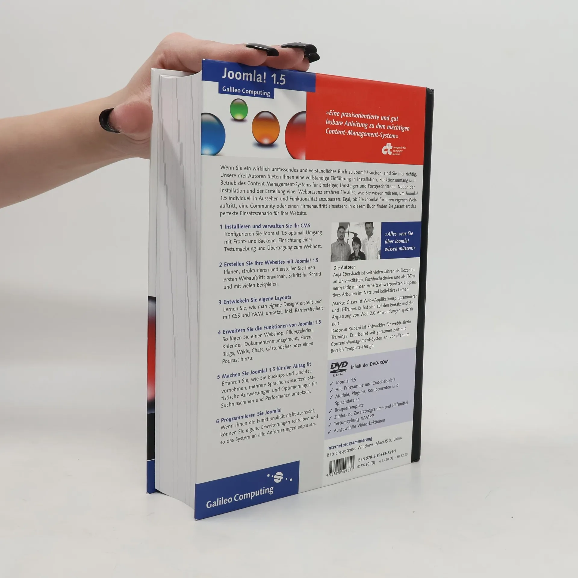 Joomla! ist ein populäres Open-Source-CMS, das durch seine leichte Zugänglichkeit, Leistungsfähigkeit und Flexibilität besticht. Es basiert auf PHP und MySQL und kann daher auf verschiedensten Serverumgebungen eingesetzt werden. Der Versionssprung von 1.0 auf 1.5 macht es umfangreiche Änderungen, wie z. B. die grundlegende Überarbeitung des Joomla!-Frameworks, Datenbankabstraktion und verbesserte Caching-Verfahren machen Joomla! 1.5 noch funktionsreicher, performanter und sicherer. Das Buch bietet ein umfassenden Einführung in Installation, Funktionsumfang und Betrieb von Joomla!. Darüber hinaus werden auch professionelle Themen wie Websitemigration, Entwicklung von Erweiterungen und Datensicherung detailliert dargestellt. Aus dem - Installation - Frontend - Backend - Eine erste Webseite - Inhalte erstellen und verändern - Module, Mambots, Komponenten - Konfiguration von Joomla! - Eine Site aufbauen - Der Joomla!-Baukasten - Facile Forms - Benutzer und Bereiche - Joomla! als Community-Treff - Simpleboard - WordPress - MamboWiki - Noch mehr Kommunikation - Systemwartung - Weiterführende Themen - Eigene Erweiterungen schreiben - Mambots erstellen - Eine eigene Komponente - Troubleshooting - Die Joomla!-API