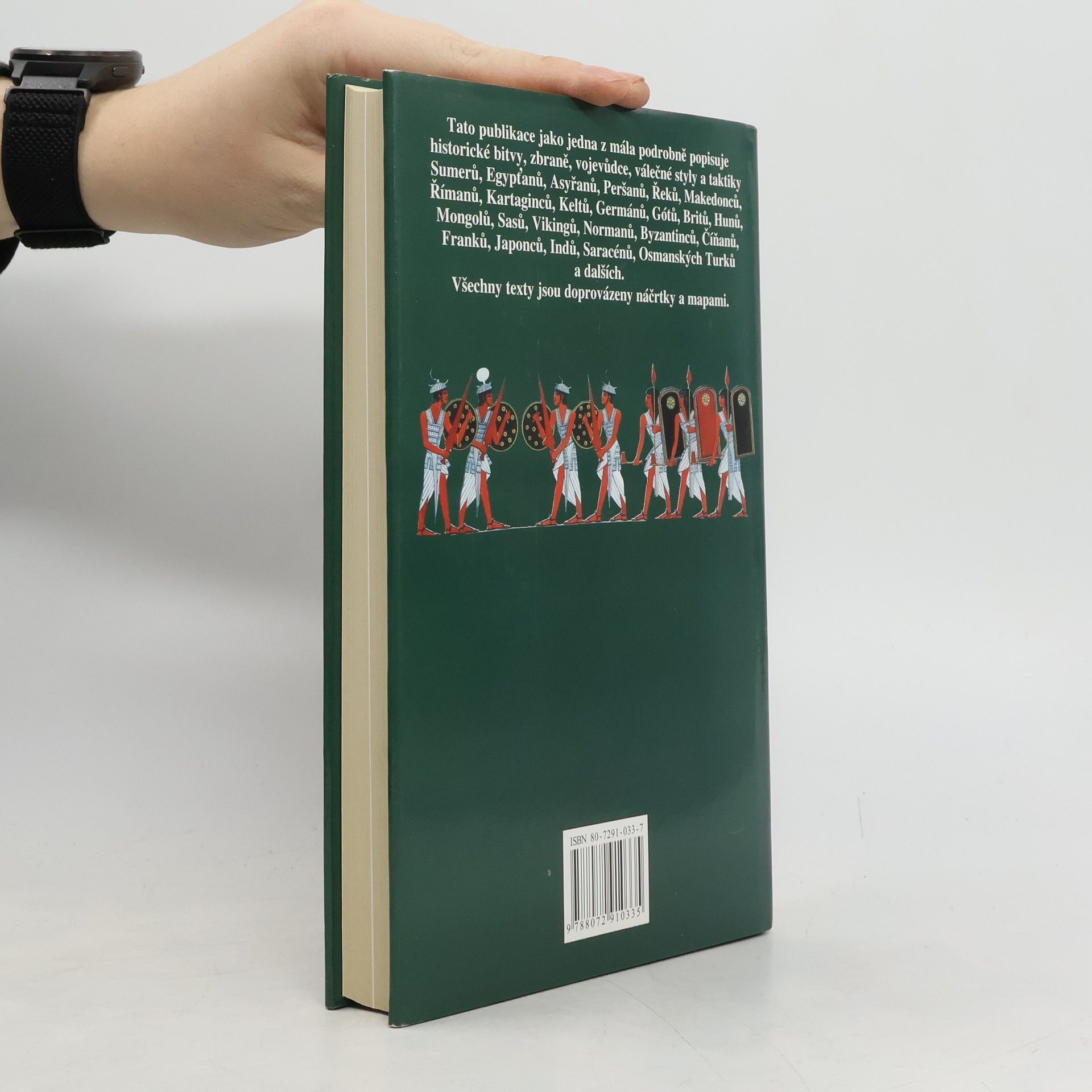 Autor se nejdříve soustředil na obecný výklad dlouhého období vývoje válek, válečnictví a bitev od starověku, přibližně od r. 7000 př. Kr., až do konce středověku. Dále detailně popisuje jednotlivé bitvy, způsob vedení boje, druhy a kvalitu zbraní a celkové vybavení armád. Hodnotí také morálku a kvalitu velitelů i vojáků. U každé popisované bitvy je podrobný plánek se schematickým nákresem rozestavení vojenských sil před útokem a je také vyznačena členitost terénu (bitva u Kadeše - 1288 př. Kr., bitva u Leukter - 371 př. Kr., bitva u řeky Jaxartes - 330 př. Kr., bitva u Kynoskefalai - 197 př. Kr., bitva u řeky Ticinus - 218 př. Kr., bitva u Farsalu - 48 př. Kr., bitva u Tagin - 552, bitva u Stamfordského mostu - 1066, bitva u Hastingsu - 1066 , bitva u Kresčaku - 1346, bitva u Poitiers - 1356, bitva u Azincourtu - 1415). Publikace je doplněna kresbami válečníků ve zbroji a rejstříkem.... celý text