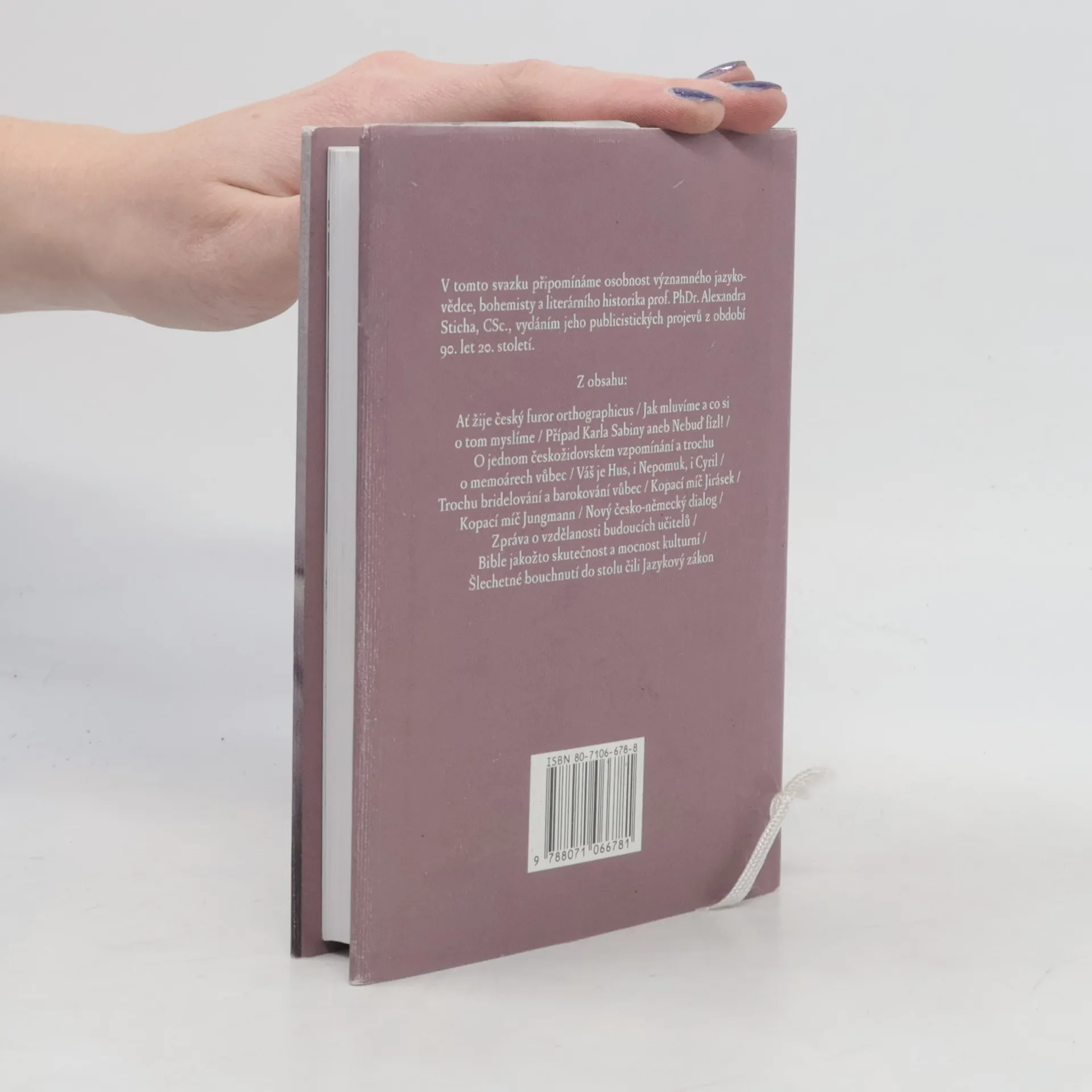 Soubor publicistických článků z devadesátých let, jimiž téměř systematicky oslovoval bohemista A. Stich na stránkách kulturních i politických novin širší čtenářskou obec. Články původně vznikaly většinou jako příspěvky k významným či znepokojivým společenským, kulturním, vědeckým i politickým tématům – kompetenci a odbornou fundovanost v nich umocňovalo především autorovo velké osobní a morální nasazení. Projevuje se v nich vše, co mu také získalo renomé oblíbeného učitele a vyhledávaného publicisty, poučený informátor, trpělivý vykladač a pedagog, zanícený bojovník i břitký polemik, to vše s patosem nevšední lidské osobnosti.