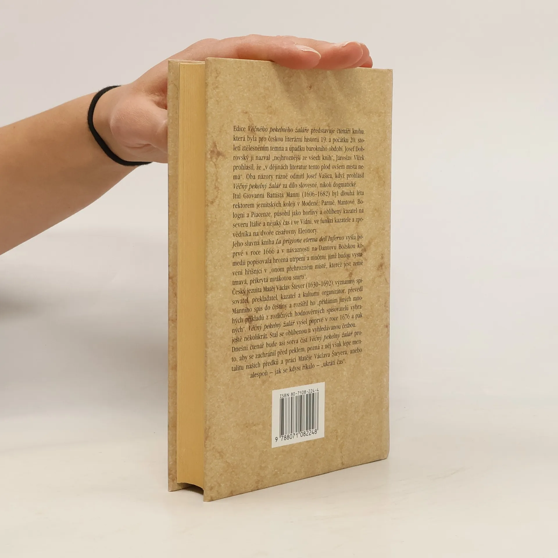 Slavná kniha La prigione eterna dell'Inferno Itala Giovanniho Battisty Manniho (1606-1682) vyšla poprvé v roce 1666. V návaznosti na Dantovu Božskou komedii popisovala hrozná utrpení a mučení, jimž budou vystaveni hříšníci v "onom přehrozném místě, kteréž jest země tmavá, přikrytá mrákotou smrti". Český jezuita Matěj Václav Šteyer (1630-1692), významný spisovatel, překladatel, kazatel a kulturní organizátor, převedl Manniho spis do češtiny a rozšířil ho "přidáním jiných mnohých příkladů z rozličných hodnověrných spisovatelů vybraných". Tento český Věčný pekelný žalář, jehož edici s dobovými rytinami čtenáři předkládáme, vyšel poprvé v roce 1676 a pak ještě několikrát. Stal se oblíbenou a vyhledávanou četbou. K vydání připravil, slovníčkem a vysvětlivkami a ediční poznámkou opatřil Martin Valášek.