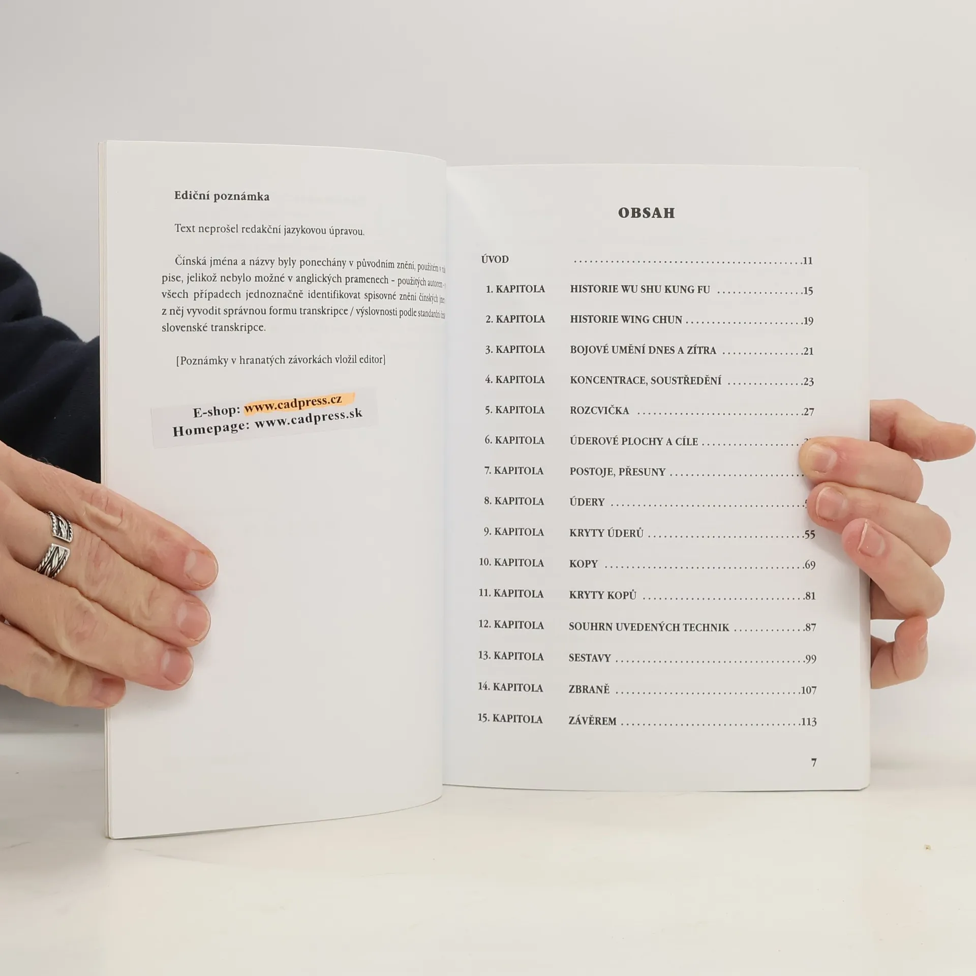 Čínské umění sebeobrany a efektivního boje v podání Leoše Kotlara - zakladatele Wing Chun Klubu Havířov a šéftrenéra klubu Sport Moravia - a jeho nejlepších instruktorů, kteří demonstruji techniky: Kateřiny Kajzarove (trojnásobna mistryně světa v softstyle / sestavy kung fu) a Petra Venery (dvojnasobný mistr světa a Evropy v softstyle / sestavy kung fu). Stručný úvod do historie, principu a metodika výcviku Wing Chun kung fu, jehož vznik se datuje zhruba do druhé poloviny 17. století. Historie Wing Chun je bezprosřredně spjata s mniškou Ng-Mui, které se přisuzuje zásluha při tvorbě více stylu, a jeji žačkou Wing Chun (neboli Krásné jaro), která později rozvinula nový styl na základě svého pozorování boje mezi liškou a jeřábem. Navic styl obohatila o cvičení se zbraněmi, které se později začaly nazývat mot
