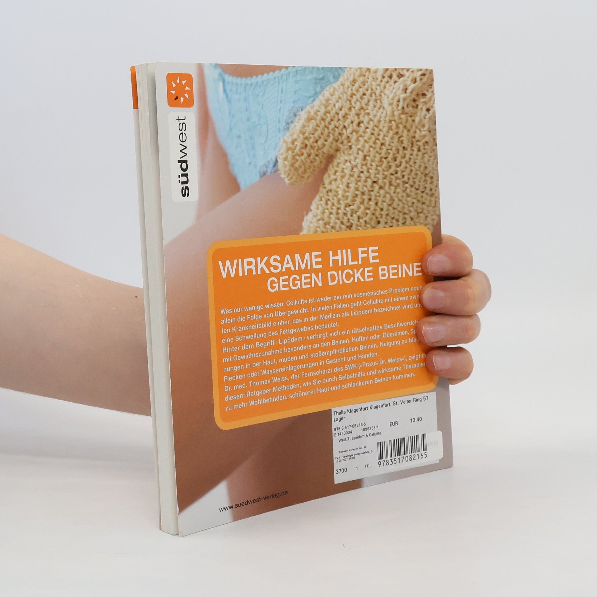 Wirksame Hilfe vom Fernseharzt Millionen Frauen in Deutschland leiden darunter: unter dem so genannten Lipödem, Fettansammlungen im Unterhautgewebe. Der bekannte Arzt und Autor Dr. Thomas. Weiss trifft in seiner Praxis seit einiger Zeit verstärkt auf dieses Phänomen: Frauen mit stark geschwollenem Gliedmaßen kommen vermehrt zu ihm, weil er als einer der ersten Ärzte wirkungsvolle Methoden gegen Lipödeme entwickelt hat. Lipödeme führen zu Schwellungen, Schmerzen, Unregelmäßigkeiten und/oder Verdickungen der Haut, vor allem an den Oberschenkeln. Dort kommt es oft auch zu dem so genannten „Orangenhautphänomen“, der „Zellulitis“, einem eher ästhetischem Problem. Bereits kleine Stöße im Alltag führen zu Blutergüssen und besonders im Bereich der Oberschenkel-Innenseiten kommt es leicht zu Entzündungen, da sich die Haut wund scheuert. Dr. Weiss erklärt in diesem Buch diese noch kaum bekannte, aber weit verbreitete und unangenehme Krankheit und beschreibt geeignete Behandlungsmethoden: Entstauung durch Vakuummassagen, spezielle Massagetechniken sowie Kompressionsbehandlungen. Dazu empfiehlt er eine Ernährungsumstellung und medikamentöse Maßnahmen. Endlich finden Betroffene hier einen kompetenten Ratgeber für ihr Problem.