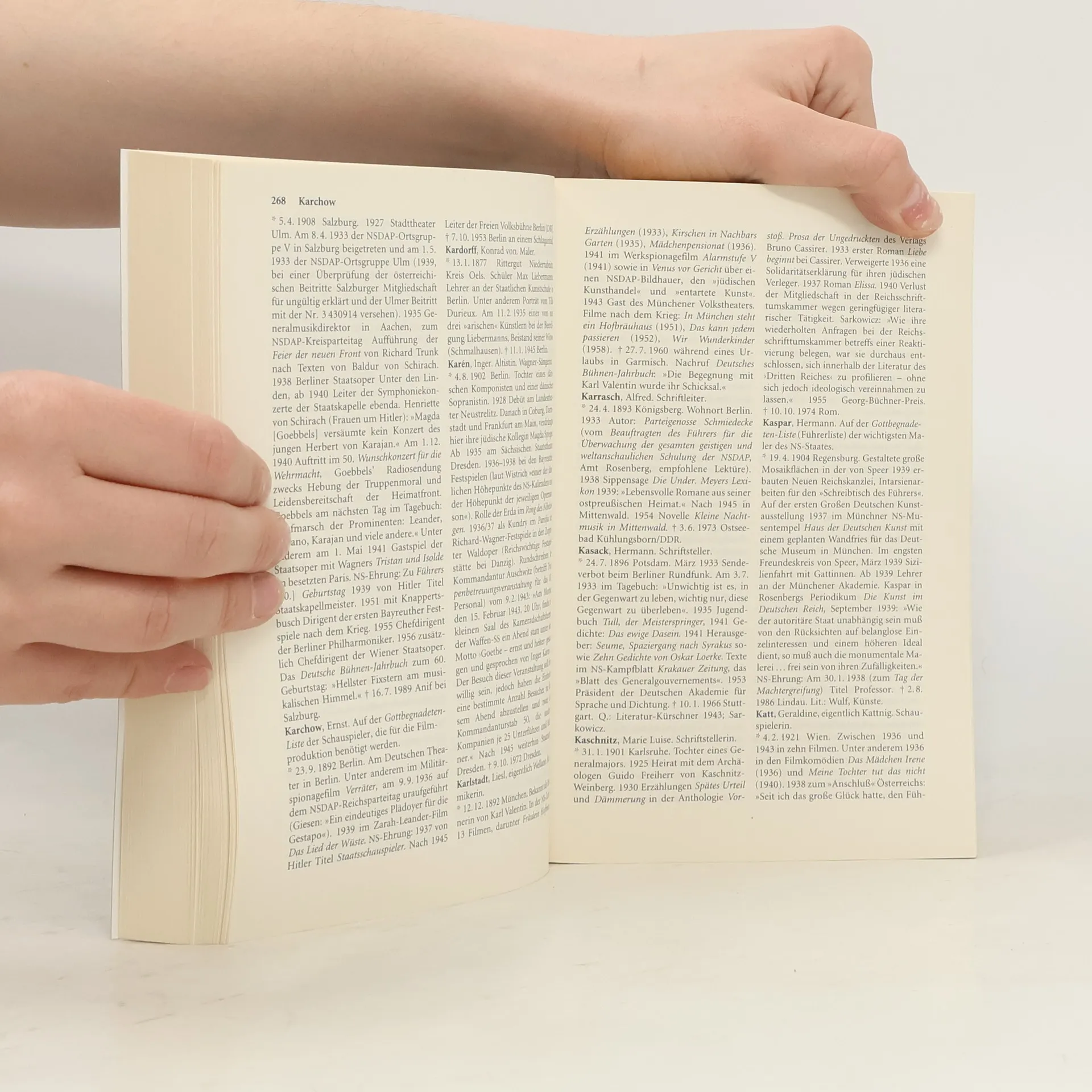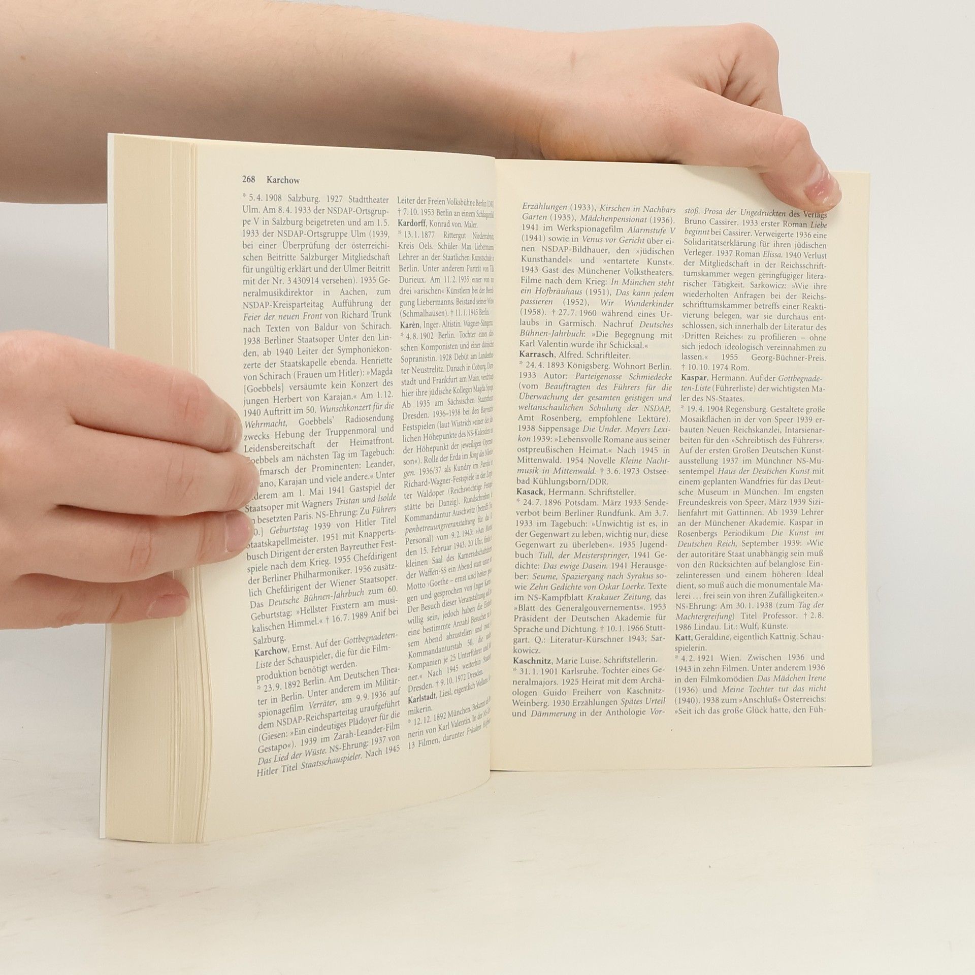 Zur Ausg. 2007: Bibliografisches Nachschlagewerk zu 4.000 Personen, die im Kulturbetrieb des 3. Reiches eine Rolle spielten. Aufgenommen wurden auch verfolgte Künstler
