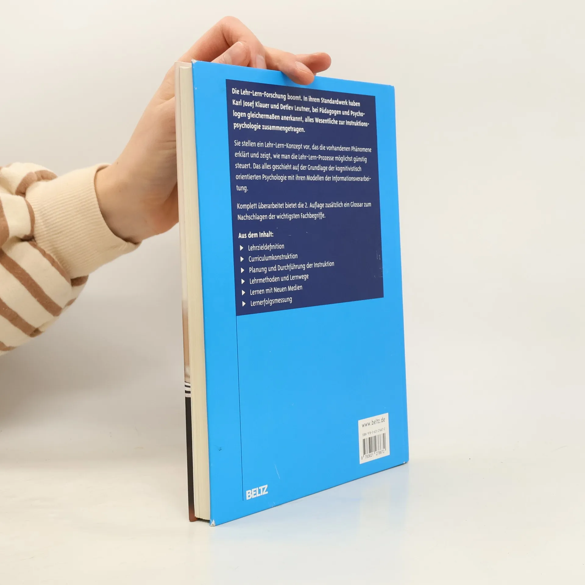 Die Lehr-Lern-Forschung boomt. In ihrem Standardwerk haben Karl Josef Klauer und Detlev Leutner, bei Pädagogen und Psychologen gleichermaßen anerkannt, alles Wesentliche zur Instruktionspsychologie zusammengetragen. Sie stellen ein Lehr-Lern-Konzept vor, das die vorhandenen Phänomene erklärt und zeigt, wie man die Lehr-Lern-Prozesse möglichst günstig steuert. Das alles geschieht auf der Grundlage der kognitivistisch orientierten Psychologie mit ihren Modellen der Informationsverarbeitung und auf dem aktuellen Stand der Forschung. Komplett überarbeitet bietet die 2. Auflage zusätzlich ein Glossar zum Nachschlagen der wichtigsten Fachbegriffe. Aus dem Inhalt: Lehrzieldefinition Curriculumkonstruktion Planung und Durchführung der Instruktion Lehrmethoden und Lernwege Lernen mit neuen Medien Lernerfolgsmessung
