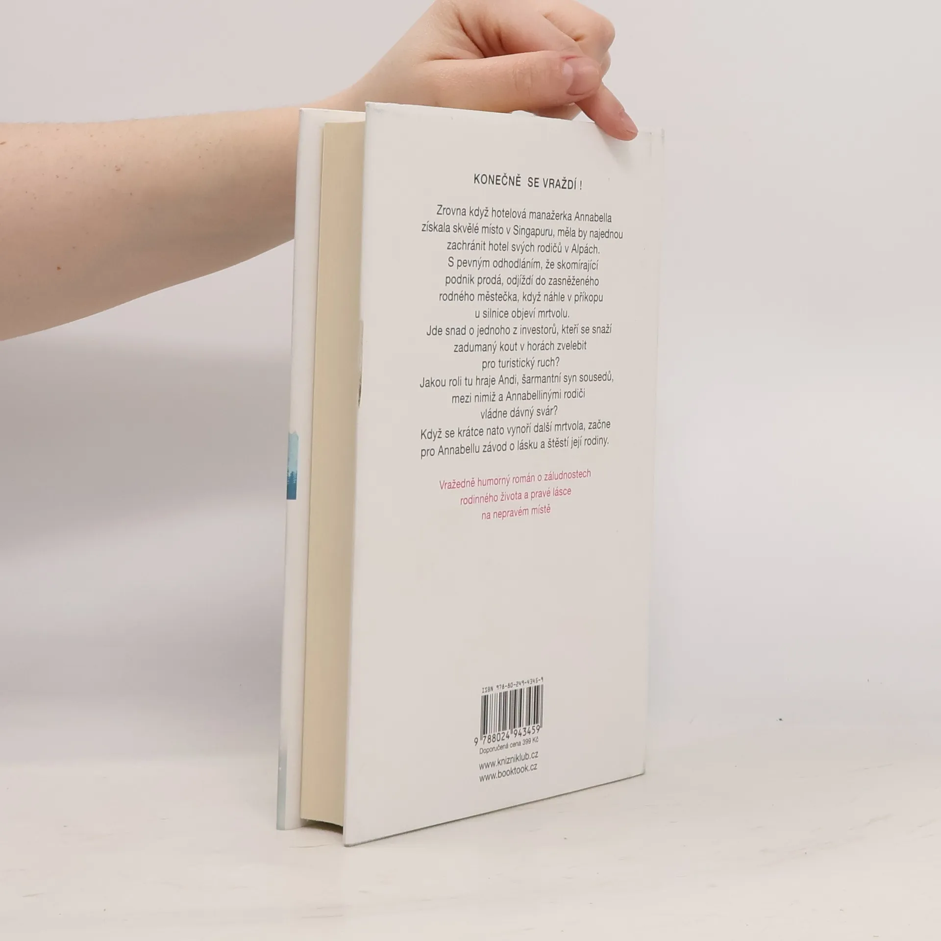 Zrovna když hotelová manažerka Annabella získala skvělé místo v Singapuru, měla by najednou zachránit hotel svých rodičů v Alpách. S pevným odhodláním že skomírající podnik prodá, odjíždí do zasněženého rodného městečka, když náhle v příkopu u silnice objeví mrtvolu. Jde snad o jednoho z investorů, kteří se snaží zadumaný kout v horách zvelebit pro turistický ruch? Jakou roli tu hraje Andi, šarmantní syn sousedů, mezi nimiž a Annabellinými rodiči vládne dávný svár? Poté co se vynoří další mrtvola, začne pro Annabellu závod o lásku a štěstí její rodiny. Vražedně humorný román o záludnostech rodinného života a pravé lásce na nepravém místě.