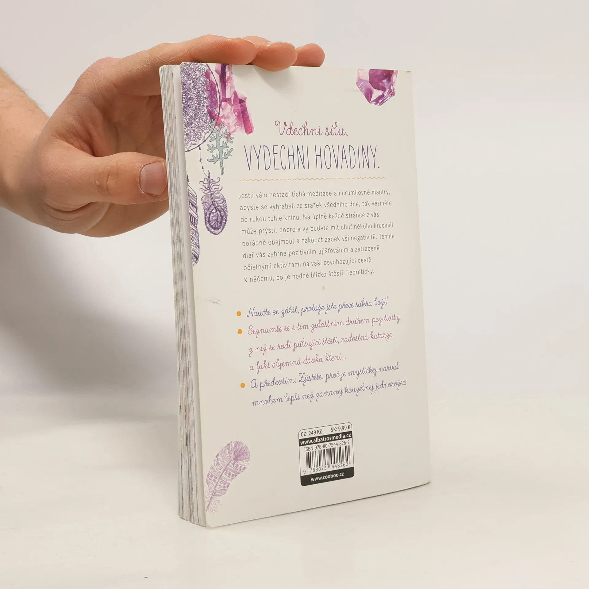 Zen jak sviň* : deník k procvičování blahodárného umění z ničeho se nepo*rat. Jestli vám nestačí tichá meditace a mírumilovné mantry, abyste se vyhrabali ze sra*ek všedního dne, tak vezměte do rukou tuhle knihu. Na úplně každé stránce z vás může prýštit dobro a vy budete mít chuť někoho krucinál pořádně obejmout a nakopat zadek vší negativitě. Tenhle diář vás zahrne pozitivním ujišťováním a zatraceně očistnými aktivitami na vaší osvobozující cestě k něčemu, co je hodně blízko štěstí. Teoreticky. • Naučte se zářit, protože jste přece sakra boží! • Seznamte se s tím zvláštním druhem pozitivity, z níž se rodí pulsující štěstí, radostná katarze a fakt objemná dávka klení… • A především: Zjistěte, proč je mystickej narval mnohem lepší než za*ranej kouzelnej jednorožec!