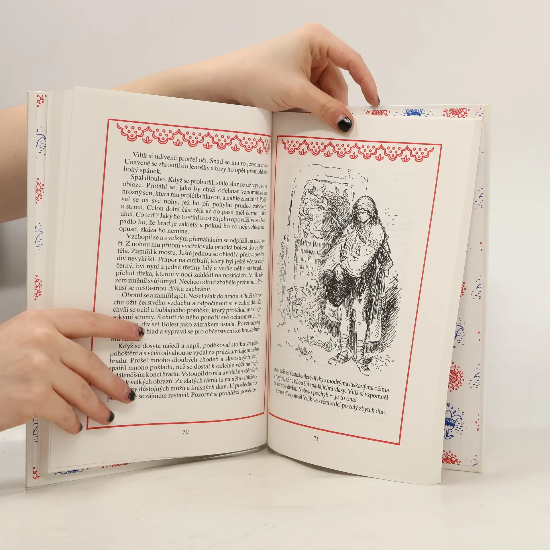 Kniha plná pohádek s krásnými ilustracemi Mikoláše Alše. Nová pohádka o Popelce Černá labuť Zlatý prsten Pták loupežník Růžový paprsek sluneční Diamantový trysk Zakletý hrad Modrý ptáček Vodníkova nevěsta Princ jelen Ošizený čert Nůž, srp a kosa Obr Oho!