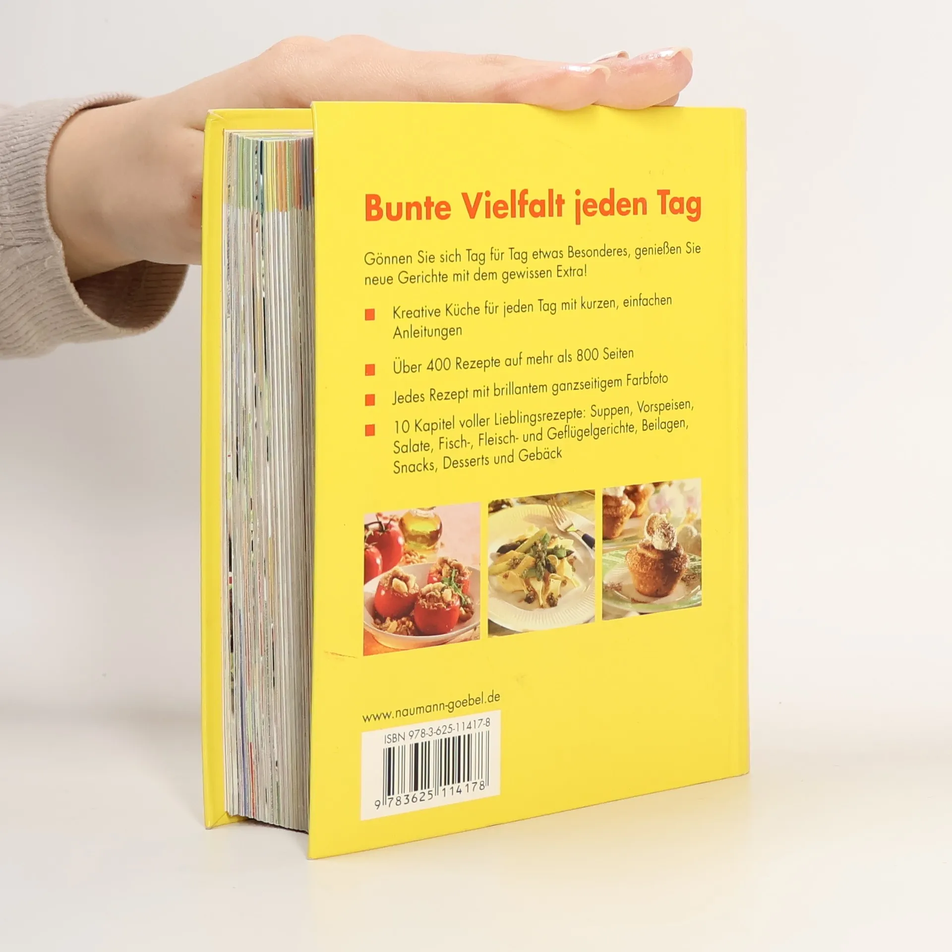 Einfach zum Knuddeln, dieses kleine Dicke. Und es gehört in jede Küche: Mehr als 400 Rezepte mit brillanten ganzseitigen Farbfotos und kurzen, einfachen Anleitungen bringen Abwechslung auf den Tisch und frischen Schwung in die Küche. Das handliche Format und das übersichtliche Layout mit dem praktischen Farbbalkencode sorgen für ein schnelles Auffinden der Rezepte - so kann der Kochspaß gleich beginnen! In 10 Kapiteln werden bewährte und erprobte Lieblingsgerichte von der Vorspeise, über Suppen, Salate, Snacks und Hauptgerichte bis zum Dessert in der klassischen Menüreihenfolge vorgestellt. Natürlich kommen dabei auch schnelle Snacks für Zwischendurch und knuspriges Gebäck zum Kaffee oder Tee nicht zu kurz, denn im kleinen, dicken Kochbuch ist Platz für alles, was schmeckt.