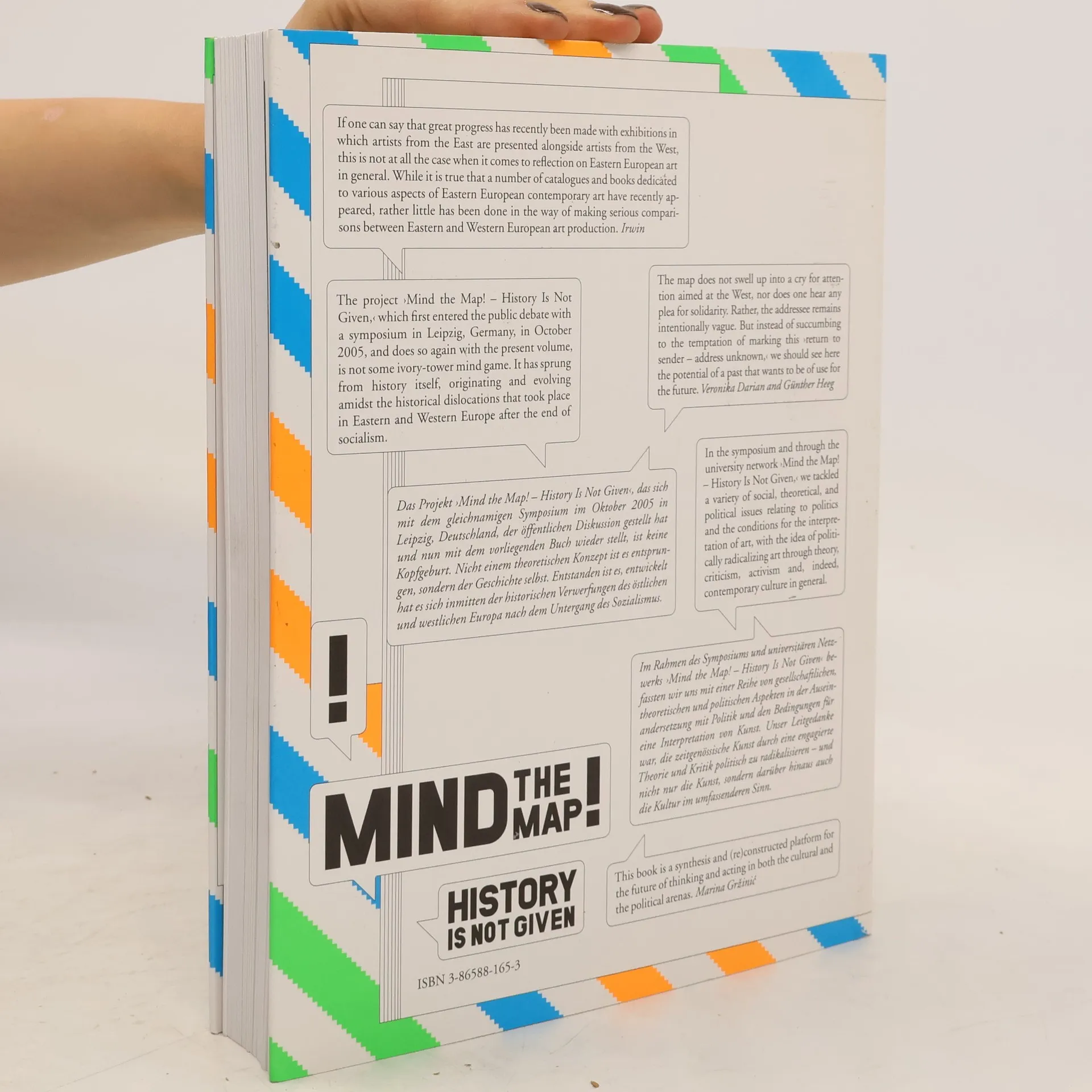 „Mind the Map! - History Is Not Given“ möchte eine Diskussionsplattform zu Kunst- und Kulturproduktionen schaffen, die an den Schnittstellen östlicher und westlicher Kunstrealitäten in Europa angesiedelt ist. Unser Ausgangspunkt ist das „East Art Map“ Projekt des slowenischen Künstlerkollektivs IRWIN. Es spürt der Geschichte der Kunstwerke und -prozesse im Territorium des östlichen Europa von den 1920ern bis heute nach. Das Ergebnis ist eine Karte mit Hunderten von Kunstwerken und künstlerischen Beziehungen in Zeit und Raum. IRWINS Impuls wiederum wurde von relations, einem Initiativprojekt der Kulturstiftung des Bundes, aufgegriffen: In einer zweiten Phase wurden acht Universitätspartner aus mehreren europäischen Städten zur Zusammenarbeit eingeladen. Sie nähern sich dem Projekt aus drei verschiedenen Perspektiven: der kunsthistorischen Perspektive, der Perspektive der Kultur- und Sozialwissenschaften, die den Diskurs um einen allgemeineren kulturellen, politischen, sozialen und medialen Hintergrund erweitert und einer performativen Perspektive, die Dramaturgie, Performance und kulturelle Interventionen umfasst.