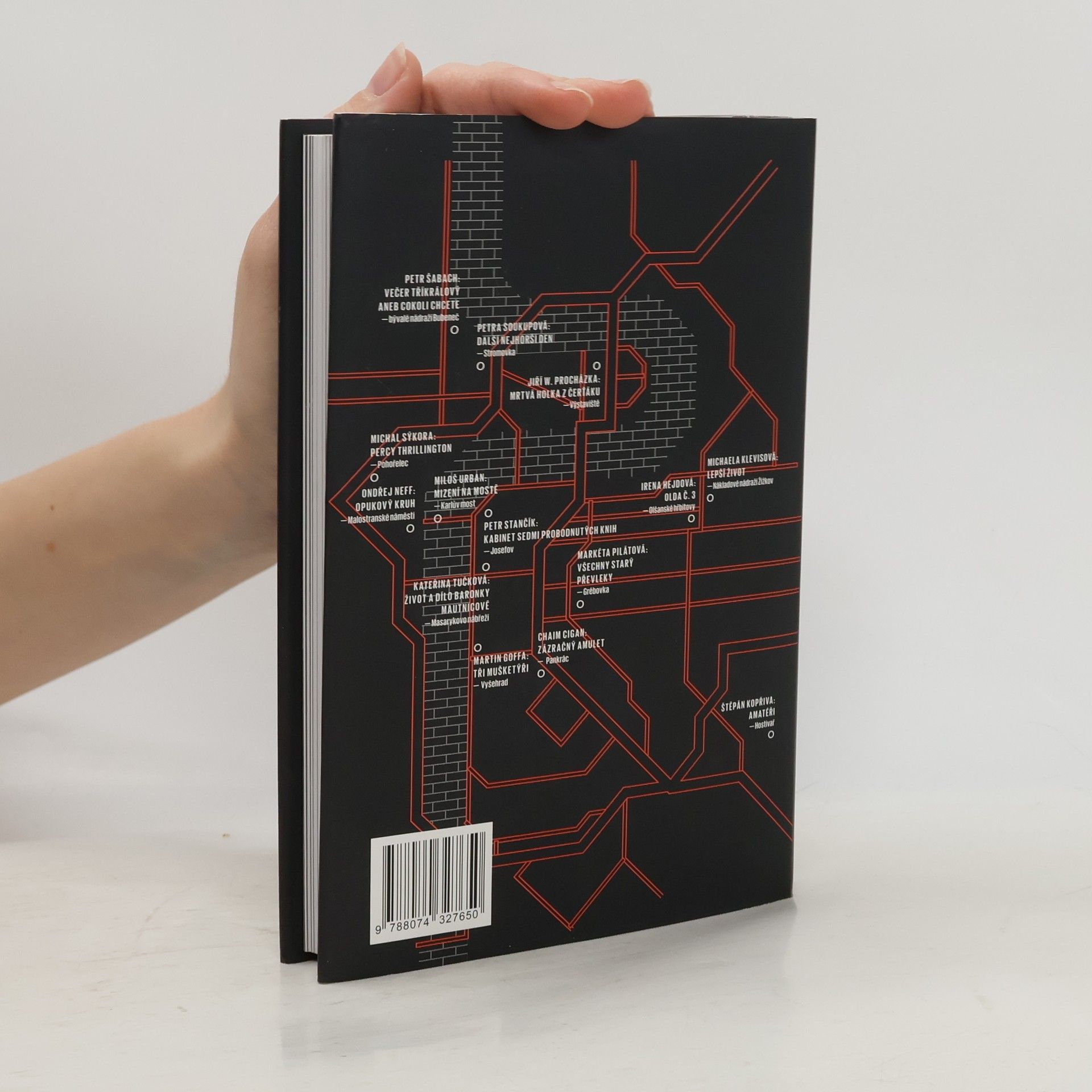 Autoři povídek: Cigan, Goffa, Hejdová, Klevisová, Kopřiva, Neff, Procházka, Pilátová, Soukupová, Sýkora, Stančík, Šabach, Tučková, Urban. Kolik tváří můžou mít pražské zločiny, záhady a tajemství? Čtrnáct předních českých autorů přijalo výzvu nabídnout na tuto otázku odpověď a navázat tak na bohatou tradici kriminálních a tajemných příběhů s pražskými náměty. Výsledkem je ojedinělý a stylově pestře laděný soubor, který nabízí setkání se zavedenými jmény české literární scény i budoucími hvězdami a je současně svérazným průvodcem po tradičních i méně známých pražských lokalitách. S Michaelou Klevisovou se vydáme na žižkovské nákladové nádraží, s Milošem Urbanem na Karlův most, v akčních příbězích Štěpána Kopřivy a Martina Goffy navštívíme Hostivař a Vyšehrad, Michal Sýkora se vydává na pražský Pohořelec, Petr Stančík nahlíží do tajemného světa zaniklého židovského ghetta, Petra Soukupová líčí nevysvětlitelné zmizení ve Stromovce, Kateřina Tučková zkoumá temnou minulost starého domu na vltavském nábřeží… Objevný svazek, uspořádaný literárním kritikem Pavlem Mandysem, vychází souběžně v české a americké verzi, kterou newyorské nakladatelství Akashic Books zařadilo do své prestižní řady Noir.