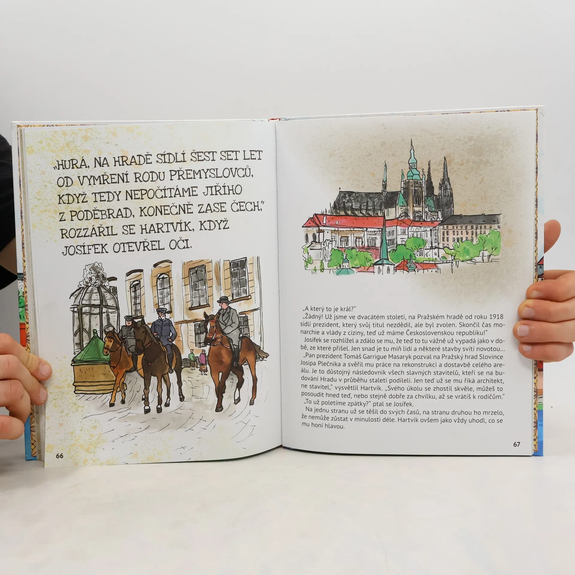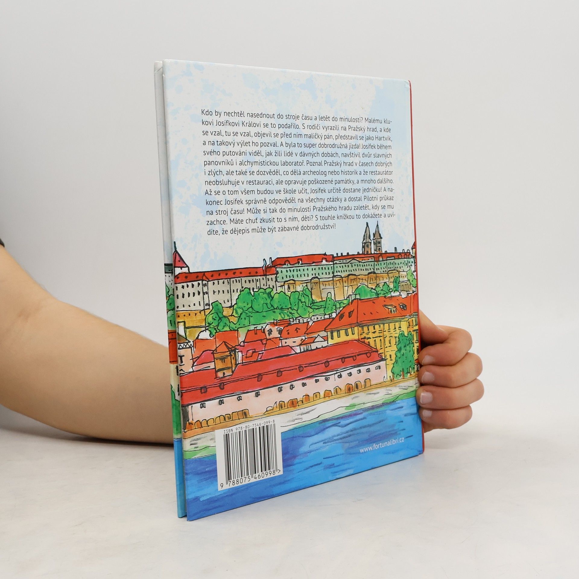 Kdo by nechtěl nasednout do stroje času a letět do minulosti? Malému klukovi Josífkovi Královi se to podařilo. S rodiči vyrazili na Pražský hrad, a kde se vzal, tu se vzal, objevil se před ním maličký pán, představil se jako Hartvík, a na takový výlet ho pozval. A byla to super dobrodružná jízda! Josífek během svého putování viděl, jak žili lidé v dávných dobách, navštívil dvůr slavných panovníků i alchymistickou laboratoř. Také se dověděl, co dělá archeolog nebo historik a že restaurátor neobsluhuje v restauraci, ale opravuje poškozené památky, a mnoho dalšího. Až se o tom budou ve škole učit, Josífek určitě dostane jedničku! A nakonec Josífek správně odpověděl na všechny otázky a dostal Pilotní průkaz na stroj času! Může si tak do minulosti Pražského hradu zaletět, kdy se mu zachce. Máte chuť zkusit to s ním, děti? S touhle knížkou to dokážete a uvidíte, že dějepis může být zábavné dobrodružství!