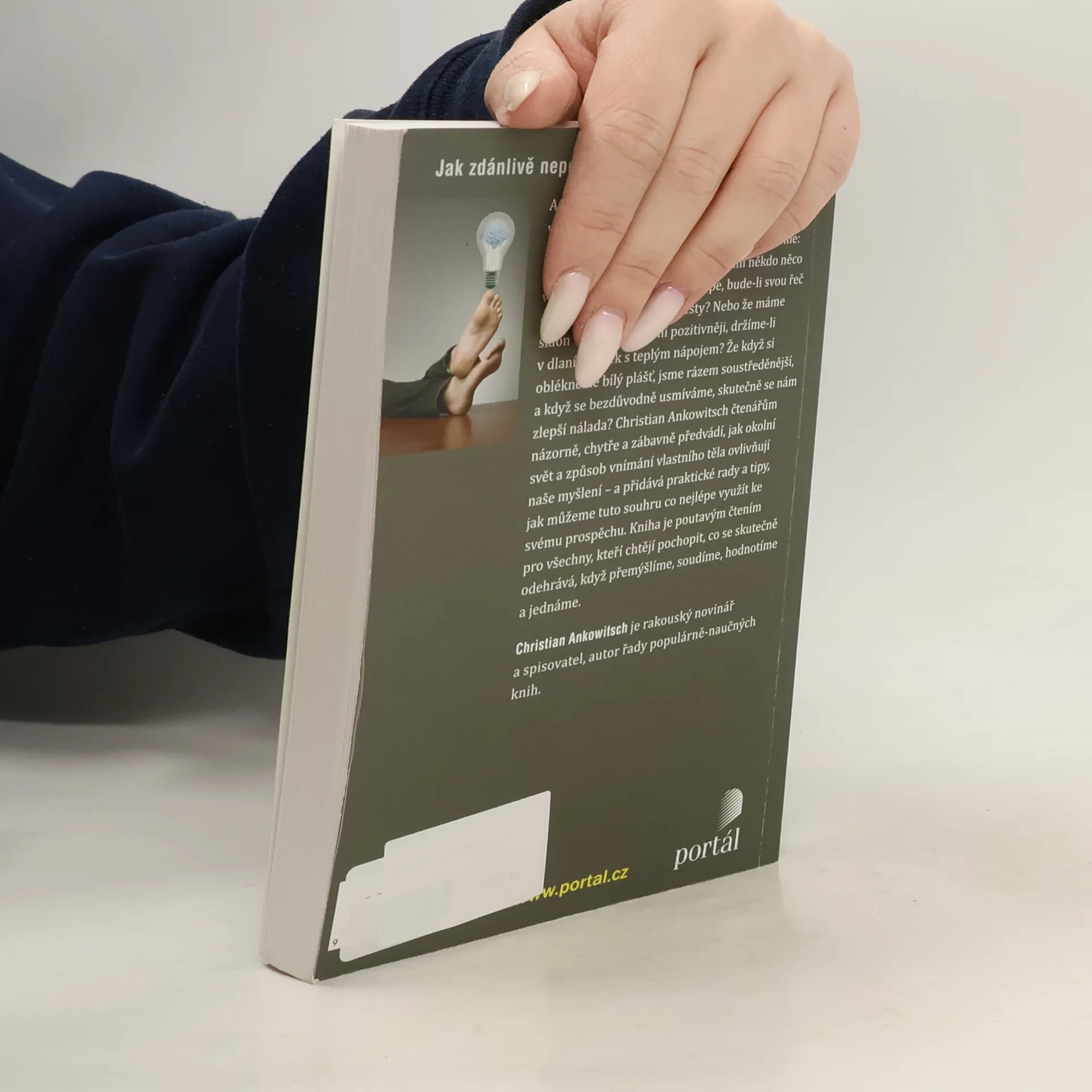 Jak zdánlivě nepodstatné věci ovlivňují naše myšlení – autor v této knize zkoumá mechanismy, jimiž se vzájemně ovlivňuje tělo a mozek, mechanismy, které obvykle buď nevnímáme, nebo podceňujeme: Kdo kupříkladu ví, že když nám někdo něco vysvětluje, porozumíme mu lépe, bude-li svou řeč doprovázet příslušnými gesty? Nebo že máme sklon vnímat své bližní pozitivněji, držíme-li v dlaních šálek s teplým nápojem? Christian Ankowitsch čtenářům názorně, chytře a zábavě předvádí, jak okolní svět a způsob vnímání vlastního těla ovlivňují naše myšlení – a přidává praktické tipy, jak tuto souhru co nejlépe využít k vlastnímu prospěchu. Poutavá kniha pro všechny, kteří chtějí pochopit, co se skutečně odehrává, když přemýšlíme, soudíme, hodnotíme a jednáme.