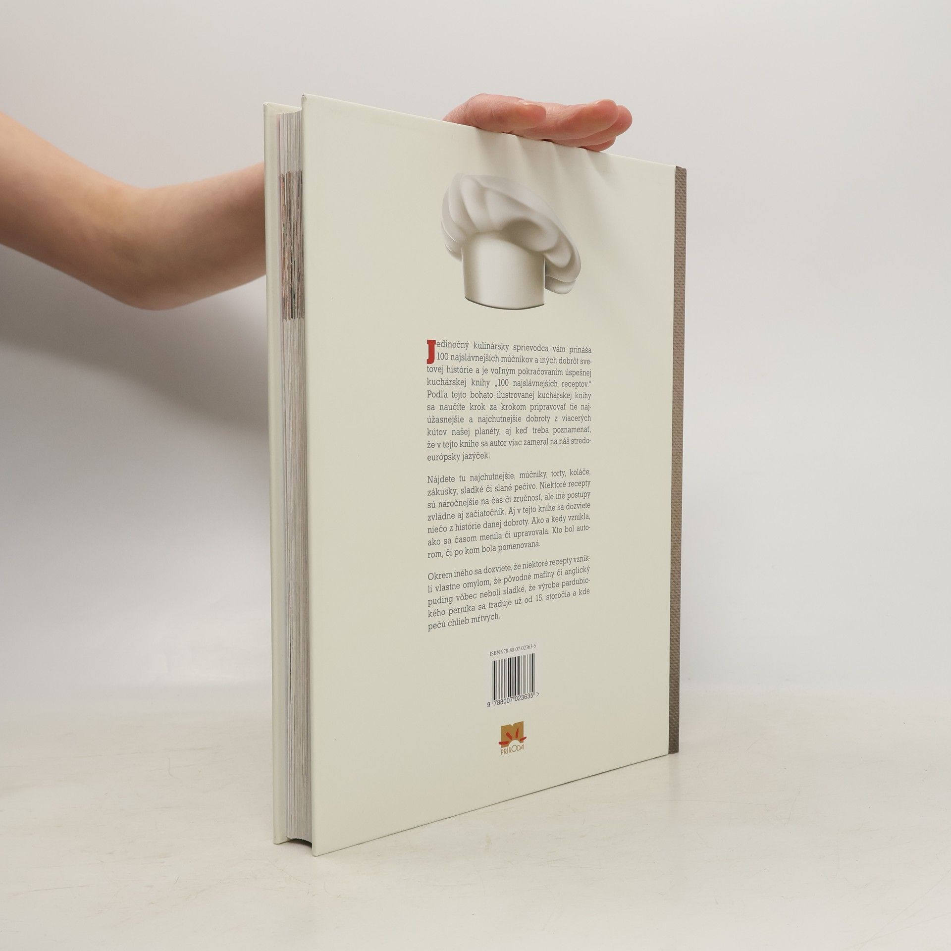 Jedinečný kulinársky sprievodca vám prináša 100 najslávnejších múčnikov a iných dobrôt svetovej histórie a je voľným pokračovaním úspešnej kuchárskej knihy "100 najslávnejších receptov". Podľa tejto bohato ilustrovanej kuchárskej knihy sa naučíte krok za krokom pripravovať tie najúžasnejšie a najchutnejšie dobroty z viacerých kútov našej planéty, aj keď treba poznamenať, že v tejto knihe sa autor viac zameral na náš stredoeurópsky jazýček. Nájdete tu najchutnejšie, múčniky, torty, koláče, zákusky, sladké či slané pečivo. Niektoré recepty sú náročnejšie na čas či zručnosť, ale iné postupy zvládne aj začiatočník. Aj v tejto knihe sa dozviete niečo z histórie danej dobroty. Ako a kedy vznikla, ako sa časom menila či upravovala. Kto bol autorom, či po kom bola pomenovaná. Okrem iného sa dozviete, že niektoré recepty vznikli vlastne omylom, že pôvodné mafiny či anglický puding vôbec neboli sladké, že výroba pardubického perníka sa traduje už od 15. storočia a kde pečú chlieb mŕtvych.