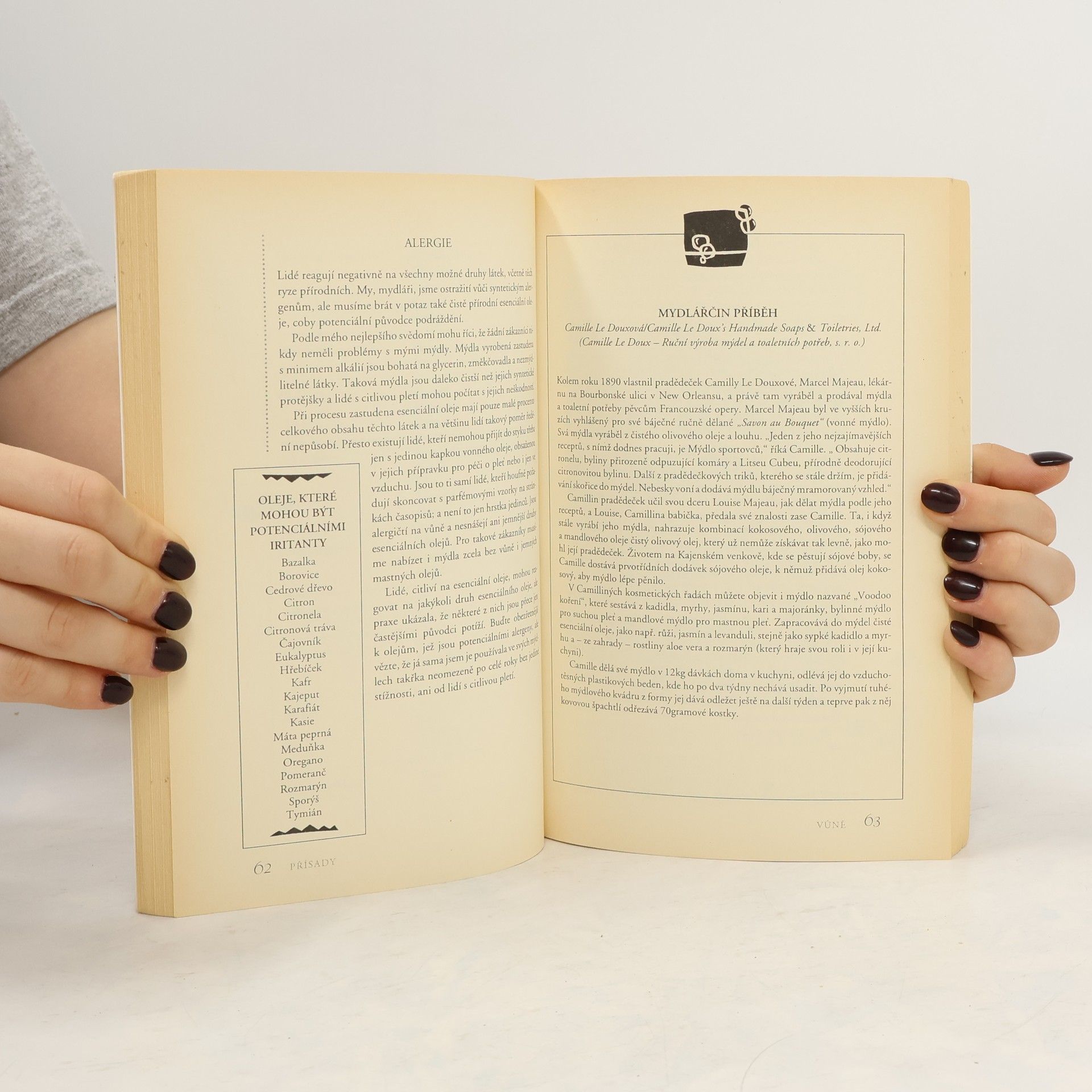 Ne všechna mýdla, s nimiž se setkáváte na pultech v obchodech, jsou pro vaši pleť skutečně vítaným ošetřujícím přípravkem. Jejich vzhled, vůně a barva, či dokonce způsob prezentace zdaleka ještě nehovoří o kvalitě a vlastnostech mýdla.V této knize se dozvíte nejen to, jak rozpoznat příznivě působící produkty péče o pleť od těch s nižší jakostí, ale i mnoho zajímavostí o přírodní kosmetice, rostlinných olejích a jejich účincích.
