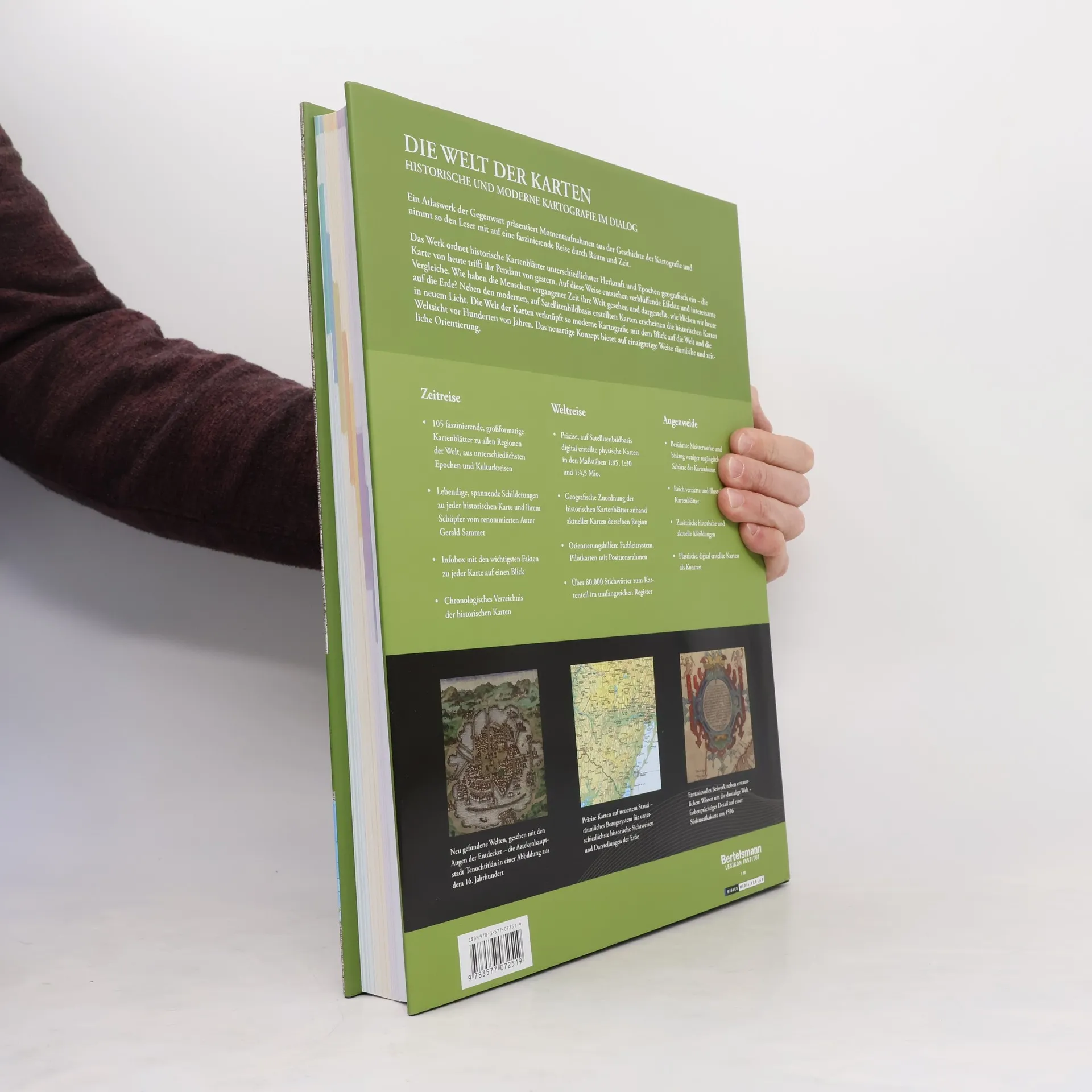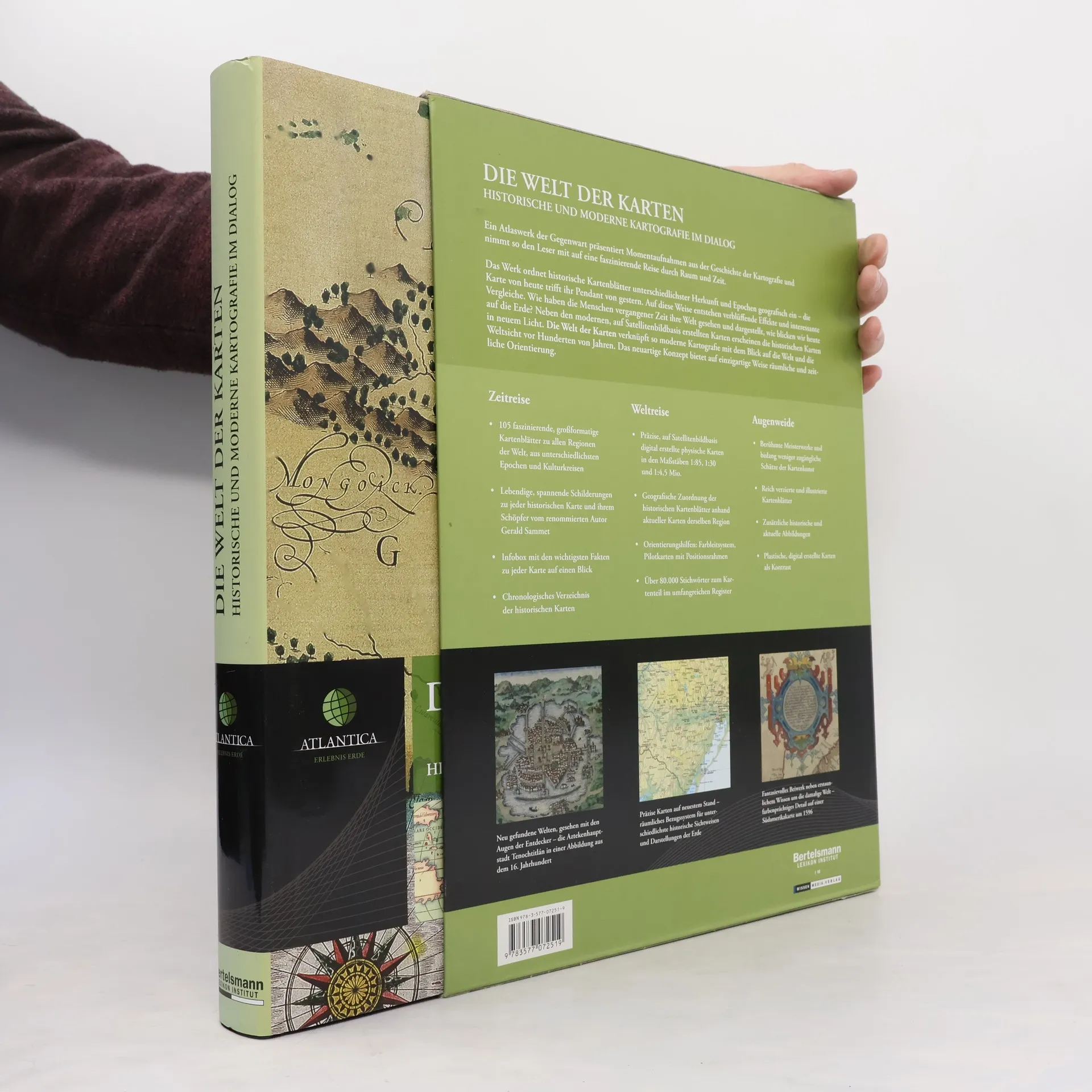 Begeben Sie sich auf eine Welt- und Zeitreise zugleich! Atlantica Die Welt der Karten nimmt die Leser mit auf eine Reise durch zwei Dimensionen. Das Werk verknüpft moderne, digital erstellte Karten mit dem Blick auf die Welt vor Hunderten von Jahren. Neben präzisen, auf neuester Satellitenbildbasis erarbeiteten Karten erscheinen die historisch bedeutenden und gleichzeitig ästhetisch ansprechenden Kartenblätter in einem neuen Licht. Somit bietet dieses neuartige Konzept auf einzigartige Weise zugleich eine räumliche und zeitliche Orientierung mit Informationen über das geografische Wissen vergangener Jahrhunderte.